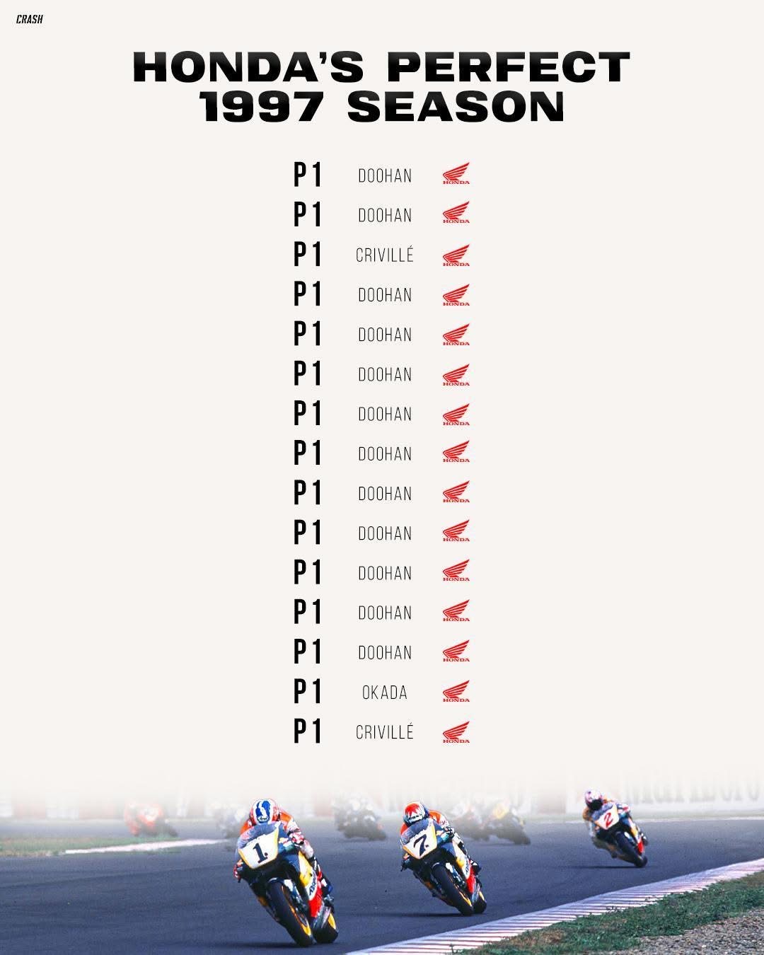 Chris hat geschrieben: Freitag 10. Januar 2025, 06:00 Wenn man heute über die Ducati Dominanz „enttäuscht“ ist, sowas war früher nicht anders: