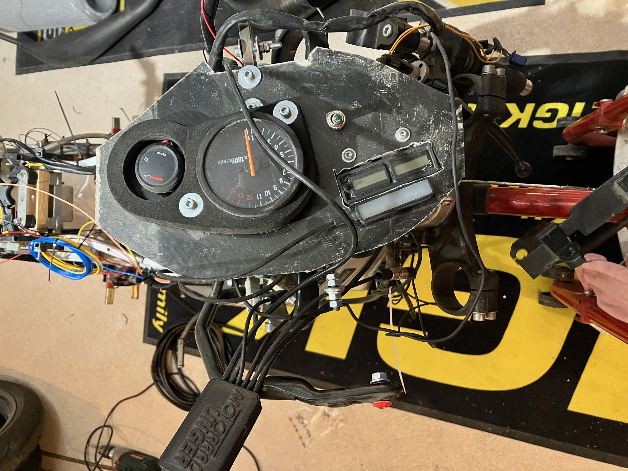 Mir wurde zum zweiten Rennen von Rushy ein Aprilia RS Challeng Gasgriff zur Verfügung gestellt. Also habe ich den dann umgebaut. Dieser ist kürzer als Original aber länger als Domino 1330.1.