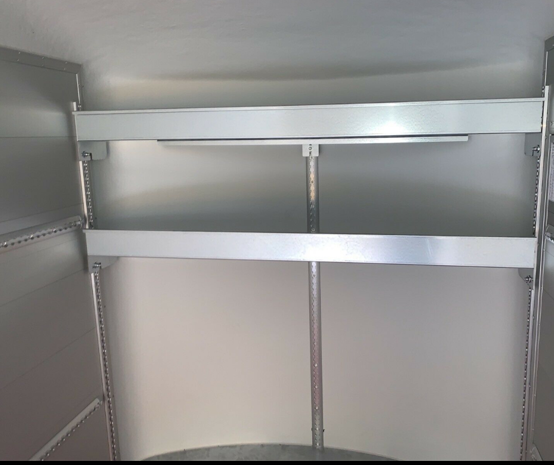 Habe dort vom VK ein Regal bzw. System mit drei Böden gekauft, die über drei vertikal angebrachte Airlineschienen befestigt werden; siehe Anhang.