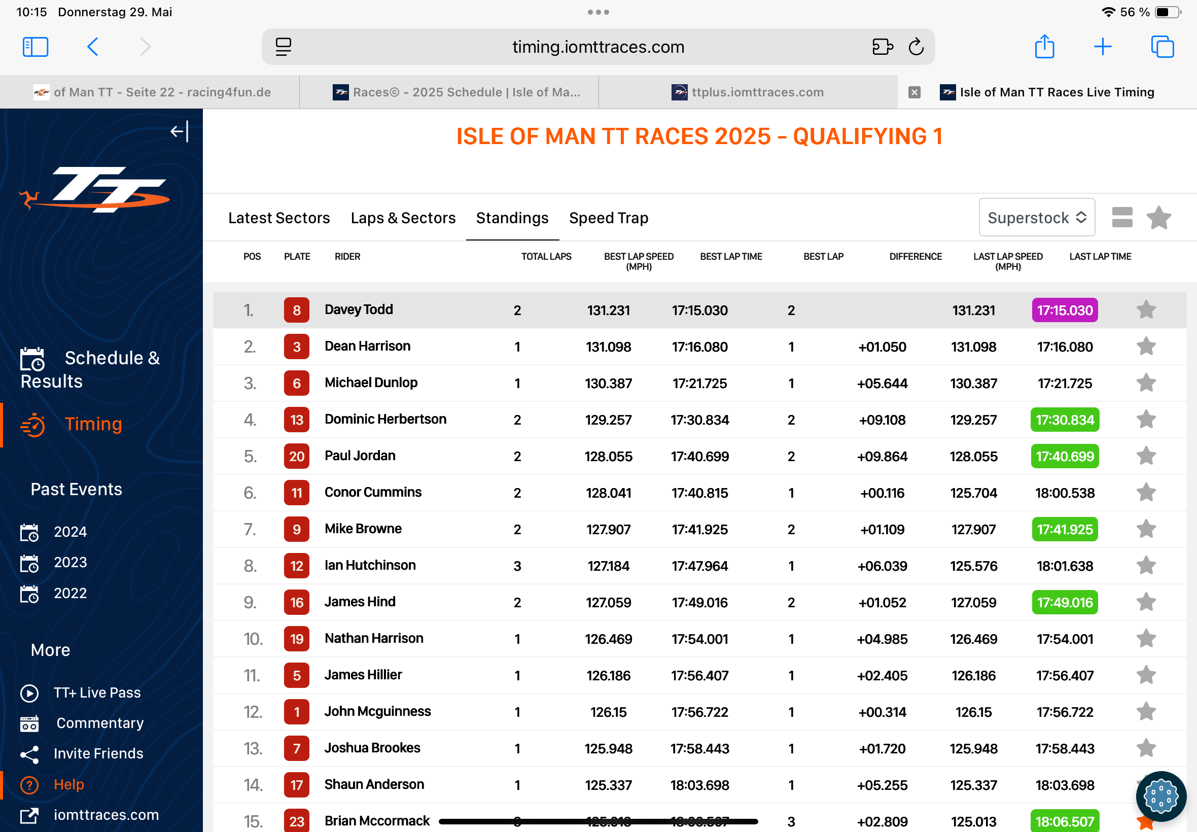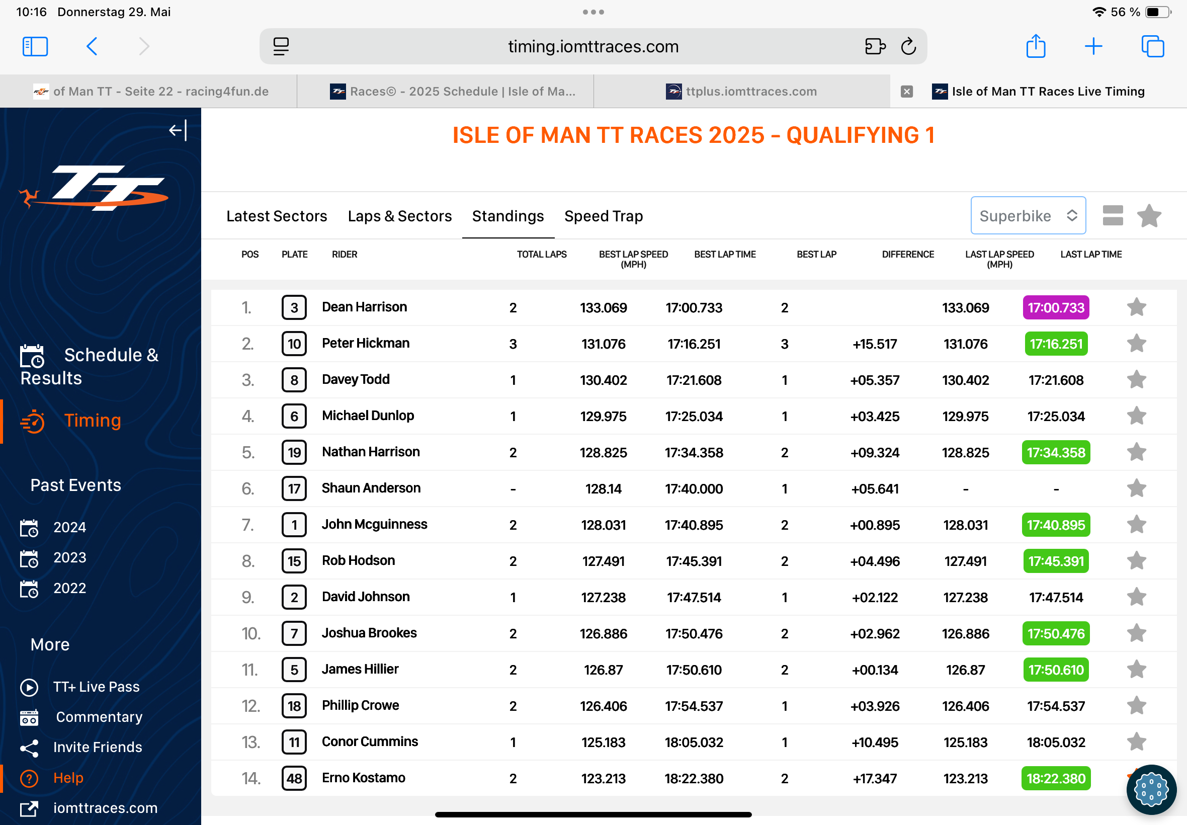 Übrigens hat sei Montag die TT begonnen.