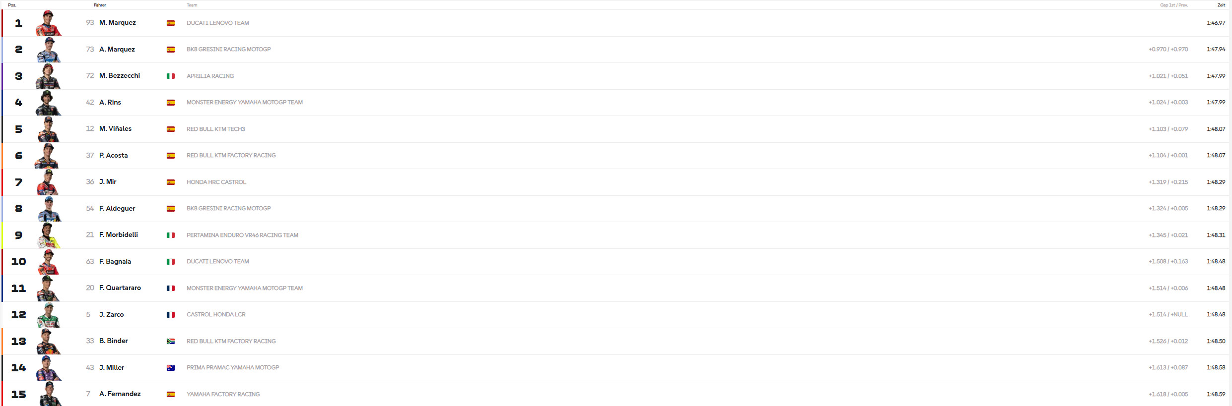 erwartbares Ergebnis ... morgen wird's hoffentlich etwas interessanter wegen der Gummies... Aldeguer ist krass was die Performance angeht... den hatte man so glaube ich nicht auf der Rechnung... schön!