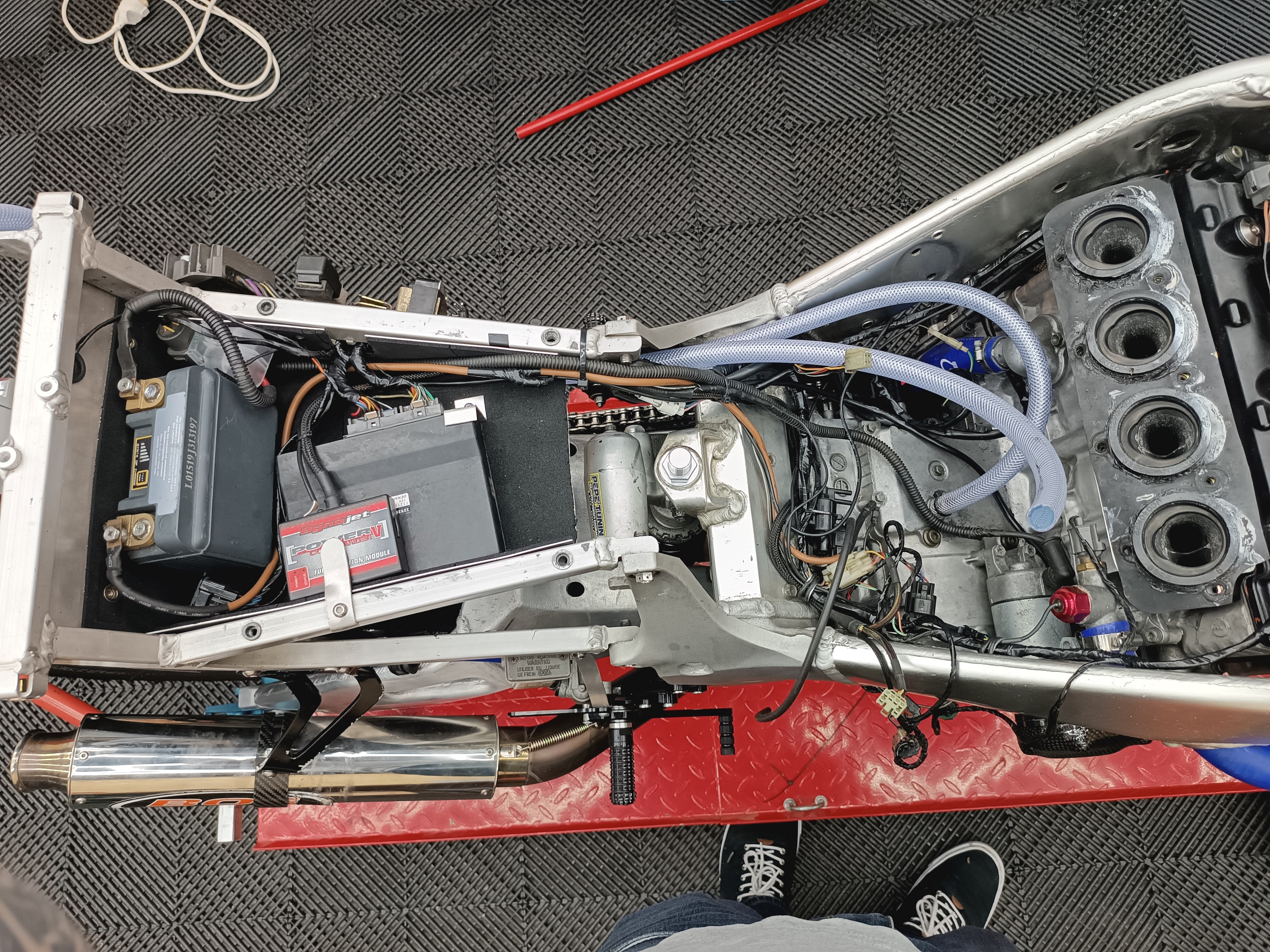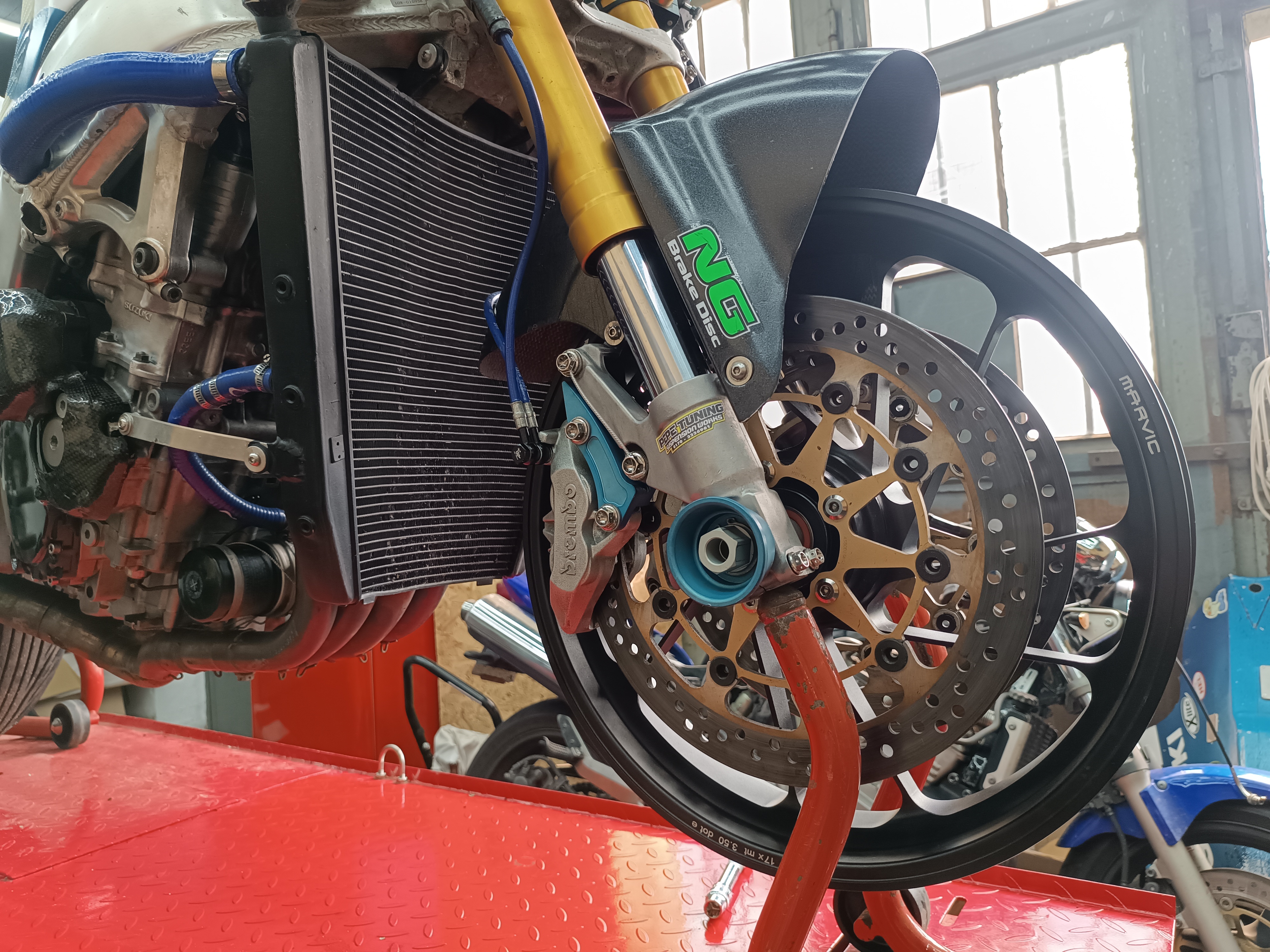 Magnesium ist mir zu heiß. Erlaubt ist bei uns alles an Felgenmaterial aber ich habe schon mal ne angerissene Magnesiumfelge live gesehen. Da habe ich kein Bock drauf. Nächsten Winter sollte Budget dafür da sein. Ich suche auch noch einen festen Dreher, der mir Teile bauen kann. Ich würde am Liebsten einen Satz leichte Felgen auf die originalen Maße anpassen und die Originalfelgen im Regen fahren. Oder ich gehe all-in und baue vorne auch eine Schnellwechselanlage. Da bräuchte ich aber auch andere Gabelbrücken und die Achsen wären dann bestimmt zu kurz. Wieder mal ein Rattenschwanz...