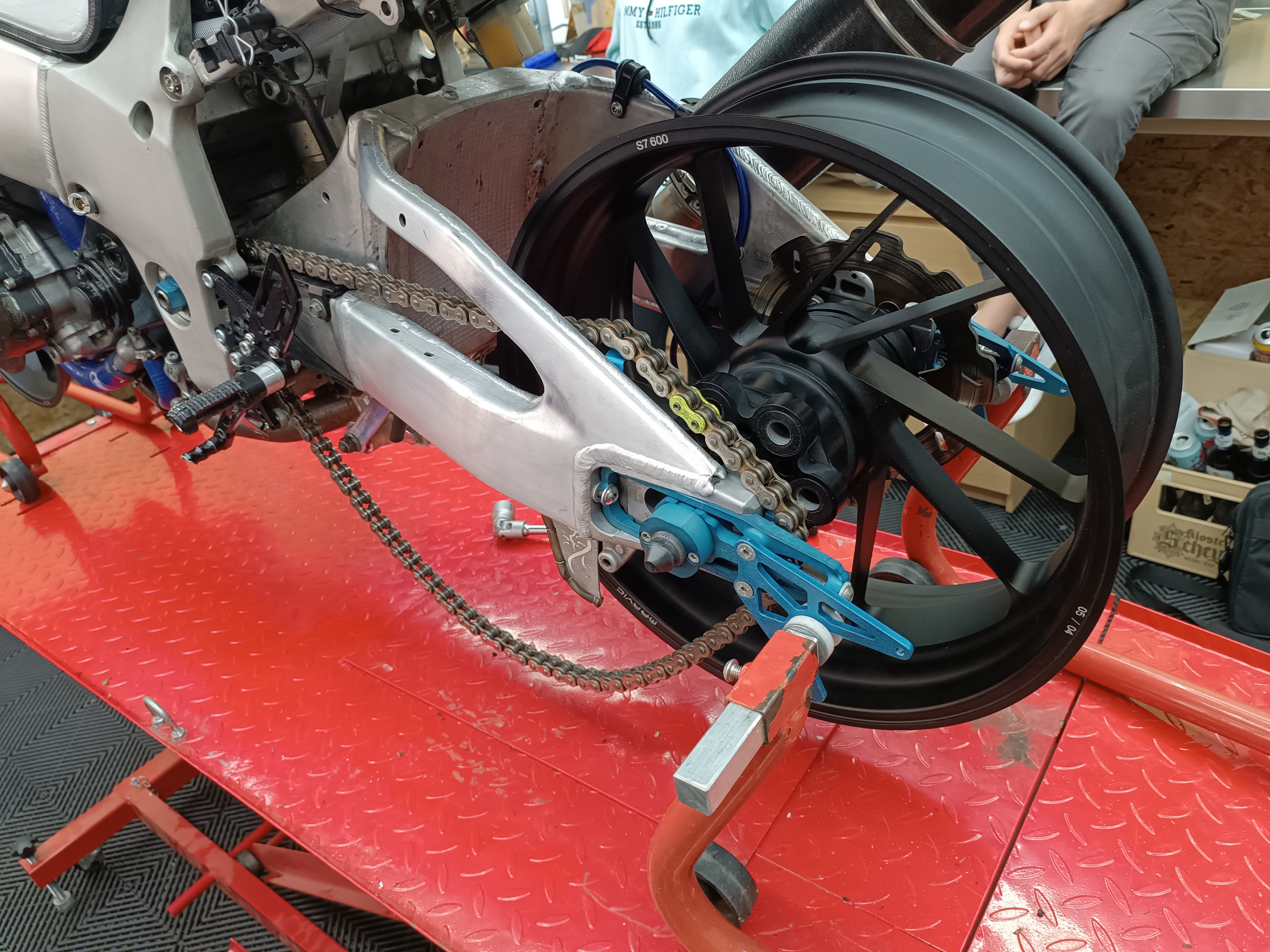 Magnesium ist mir zu heiß. Erlaubt ist bei uns alles an Felgenmaterial aber ich habe schon mal ne angerissene Magnesiumfelge live gesehen. Da habe ich kein Bock drauf. Nächsten Winter sollte Budget dafür da sein. Ich suche auch noch einen festen Dreher, der mir Teile bauen kann. Ich würde am Liebsten einen Satz leichte Felgen auf die originalen Maße anpassen und die Originalfelgen im Regen fahren. Oder ich gehe all-in und baue vorne auch eine Schnellwechselanlage. Da bräuchte ich aber auch andere Gabelbrücken und die Achsen wären dann bestimmt zu kurz. Wieder mal ein Rattenschwanz...
