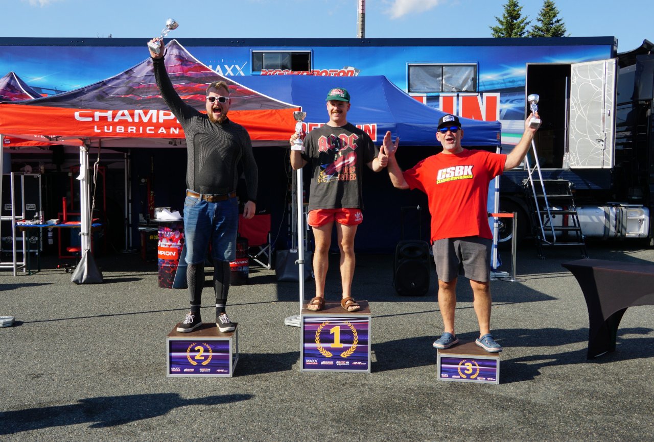 Die Rennen waren allerdings eine harte Probe. Bei gut 35°C startete Rennen 1 und wurde nach einer halben Runde wegen einem Sturz genau vor mir abgebrochen. Nach einer Weile kam dann der Restart bei dem ich super von der Linie weg kam und mich hinter der schnellen #14 aka Bernd Kreuzer einreihen konnte. Nach einigen Probeansätzen konnte ich mich dann endlich an Bernd vorbeibremsen und die Flucht nach Vorne ergreifen! Auch Reinhard Strack viel mir kurz danach zum Opfer und nach einem kleinen Kontakt mit einem Sandsack kam bald endlich die ersehnte Zielflagge. Es war einfach viel zu heiß…