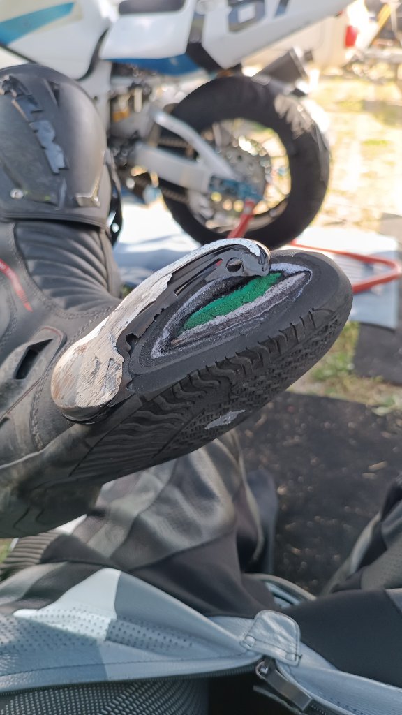 Der Samstag drehte sich um unsere Qualifyings bei denen ich mich mit einer 2:19,185 auf P7 qualifizieren konnte. Allerdings hatte ich extrem mit der Schräglagenfreiheit zu kämpfen der meine Stiefel zum Opfer fielen. Nachdem höher montierte Rasten das Problem nicht lösen konnten, schraubten Bernd und ich das Heck ein paar Zentimeter höher. Beim Warm Up am nächsten Morgen konnte ich die Änderung ausprobieren und fuhr just eine Bestzeit von 2:19,792 in der einzigen vollen Runde. Meine Stiefel hatten keinen Bodenkontakt also war ich für die Rennen super aufgelegt.
