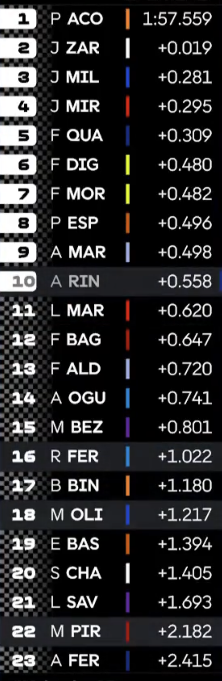 Aldeguer hat seinen dritten Platz verloren wegen zu niedrigem Luftdruck. Ist jetzt als 7. gewertet.