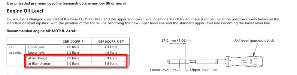 Ein halber Liter mehr Füllmenge deutet auf die HRC Ölwanne hin, im Standard Motor wäre der Ölstand dann deutlich höher bei der Füllmenge:stscit04 hat geschrieben: ↑Montag 1. Dezember 2025, 10:56Würde mir nicht einleuchten, weil die HRC Wanne ja nach unten tiefer ist und der PeilstabKevbike hat geschrieben: ↑Montag 1. Dezember 2025, 09:40 Teil vom HRC-Kit ist eine andere Ölwanne. Vermutlich hängt der geänderte Ölstand damit zusammen.