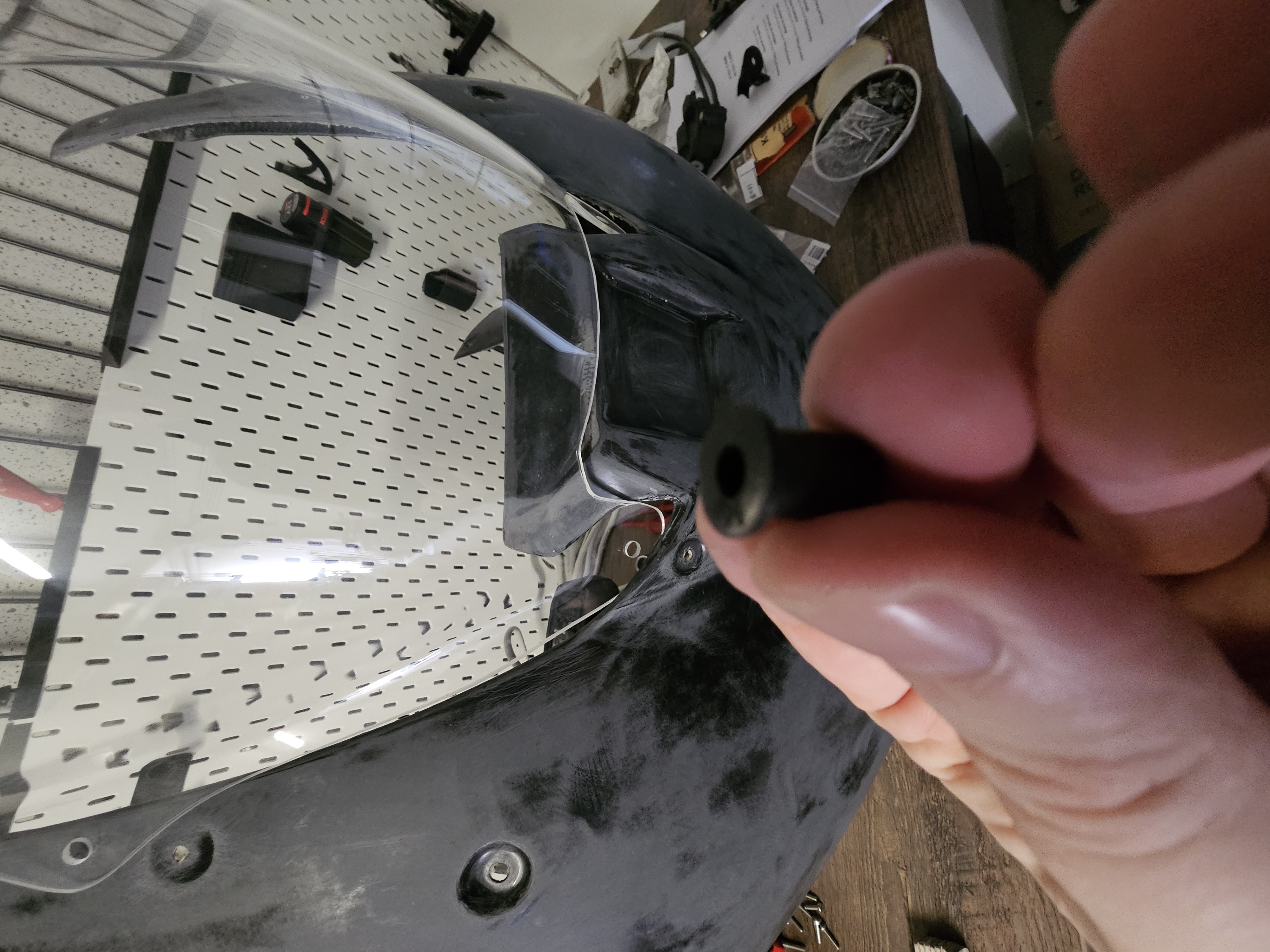 das ist jetzt mit Sicherheit eine total dämliche Frage aber ich stehe auf dem Schlauch. Könnt ihr mir sagen wie ich die Scheibe an der Verkleidung befestige? Beides ist von IMT Fairings für die M1000RR. Die gummierten Schrauben passen nicht durch die Löscher in der Scheibe.