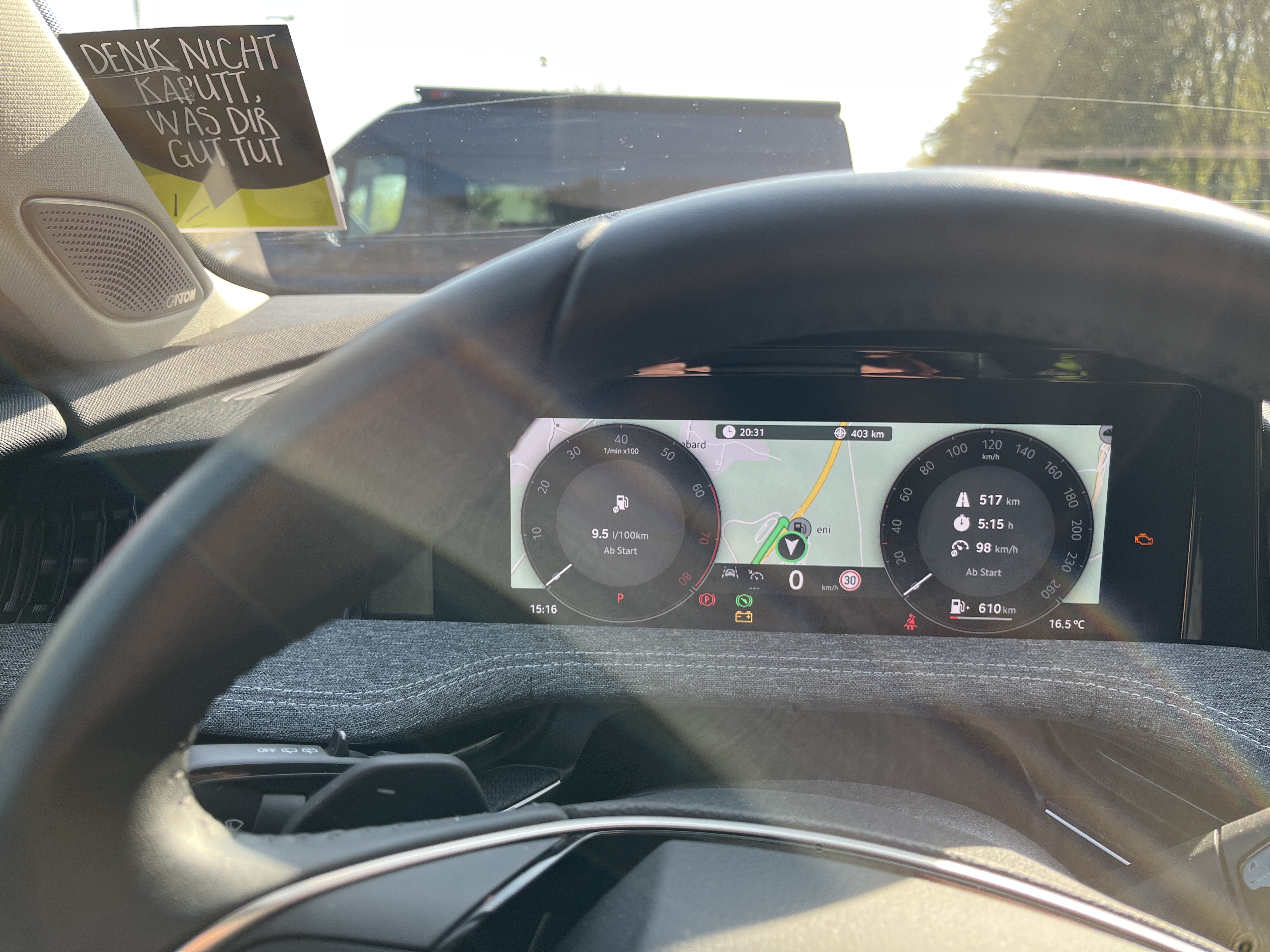 Verbrauch HL-Darmstadt 9,3L Super auf 100km mit 75 avg. und leider mehr Stau als nottat.