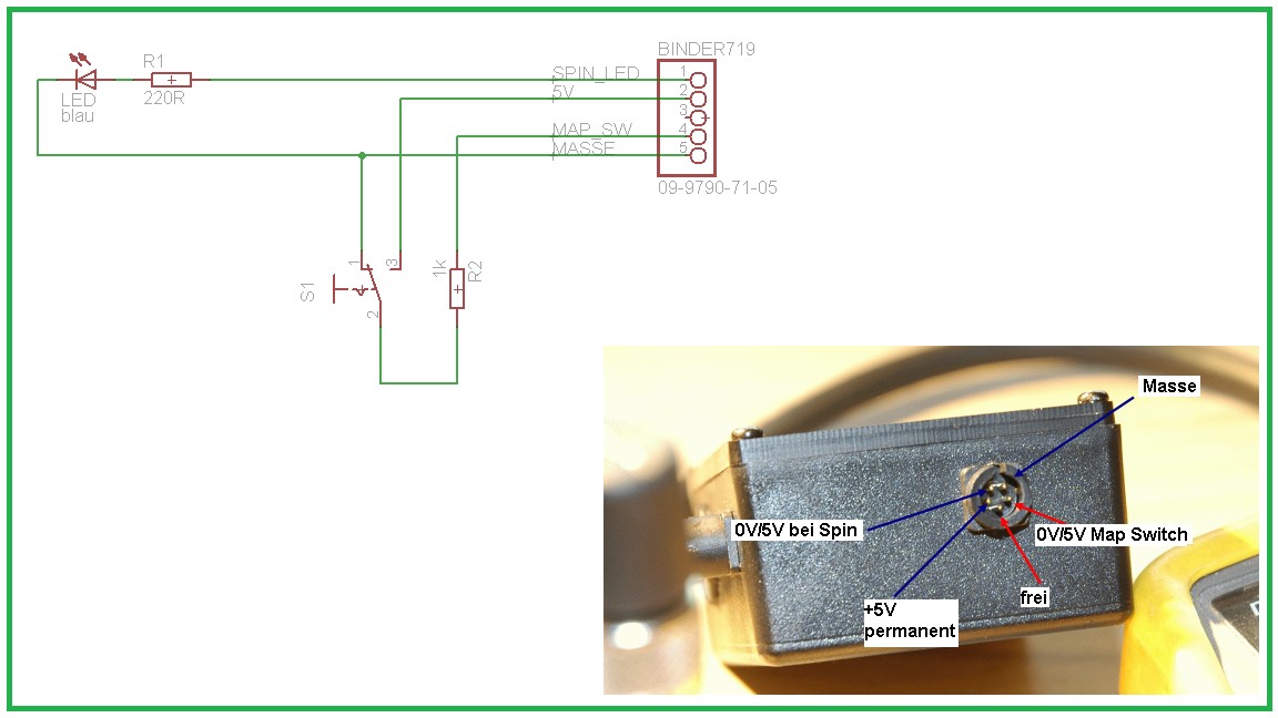 Da ich heut noch dran gebastelt hab, hier noch eine Info für euch, wie LED und/oder Map-Schalter angeschlossen werden können.