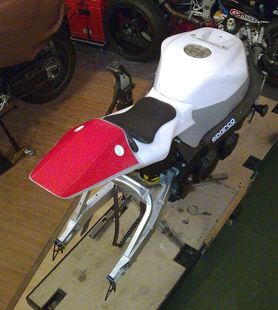 durch den Tank verschiebt sich die Sitzposition um grob ca. 5-7 cm (hab noch nicht genau nachgemessen) nach vorn. hab mir auch nen neuen Heckrahmen gebaut und dabei sehr auf rel. bequemen Knieschluss geachtet, ob es mit oder ohne Adapterplatten für Rasten (Zurückversetzung und Höhenregulierung) das wird wohl ausgetestet werden müssen.