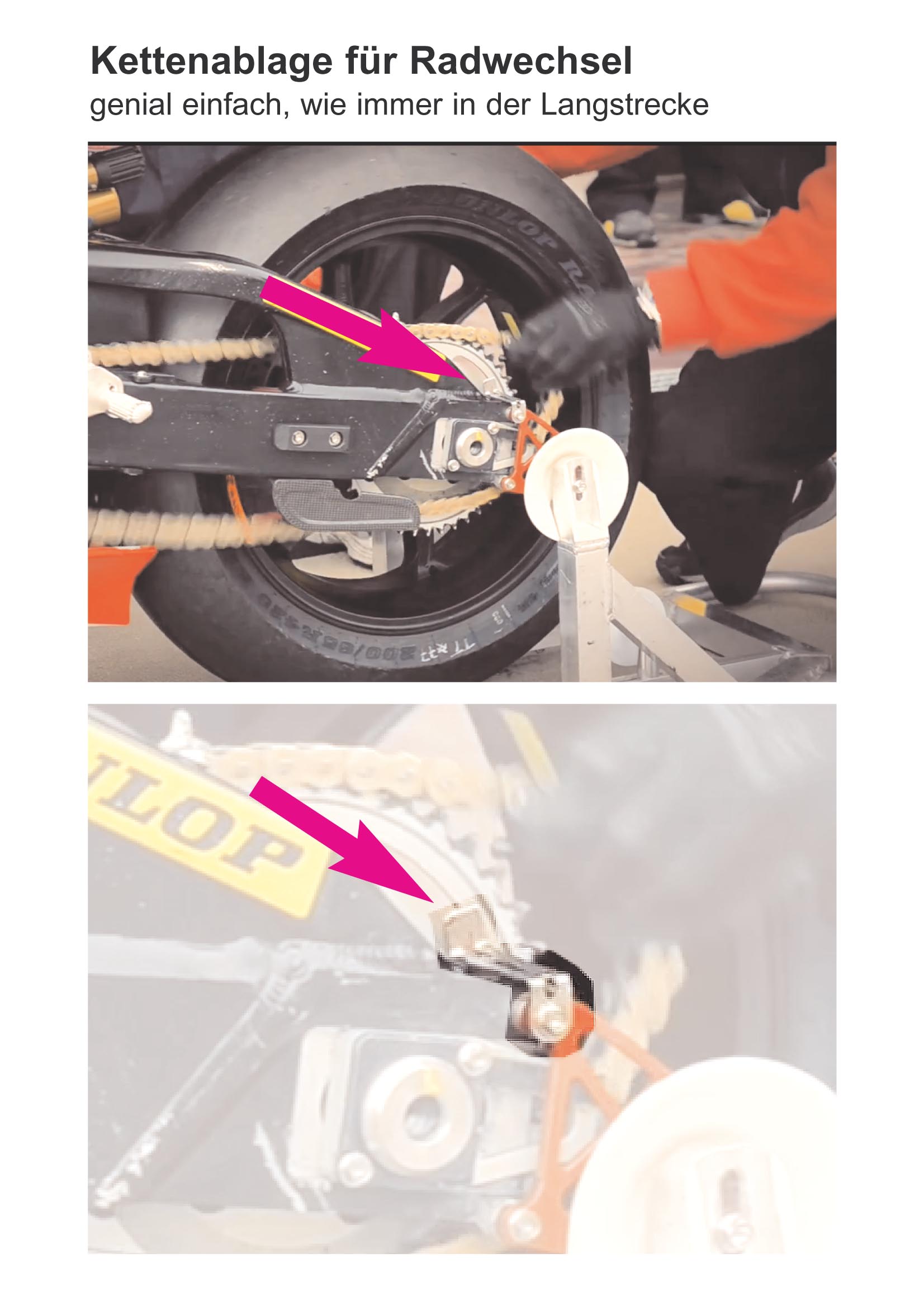 ich werd bei meiner RN12 da wo der Kettenschutz hinten an der Schwinge der befestigt war von einem alten Kettenrad ein Stückchen hin machen, wo ich dann die Kette drauflegen kann