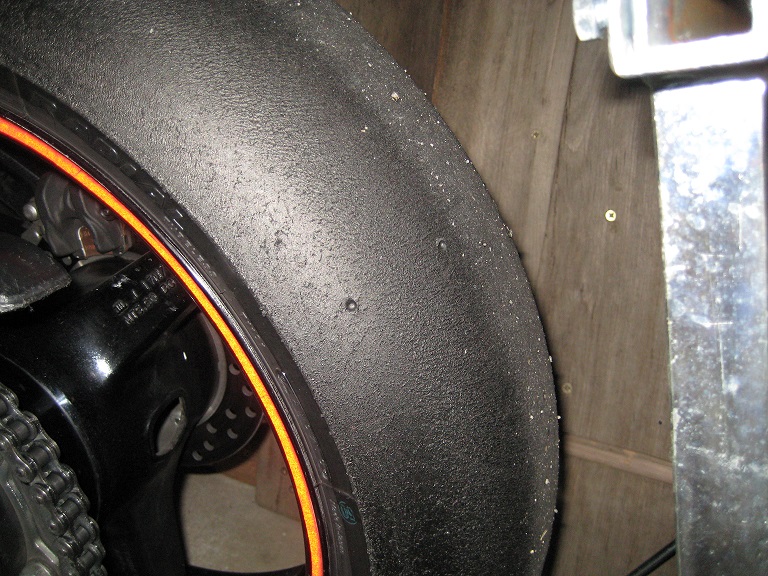 So hier meine Erfahrungen mit den neuen Bridgestone Slicks V01. War jetzt bei 34 Grad Luft und bis zu 50 Grad Track auf dem Sachsenring. Hinten auch wie vorn mit den soften bestückt. Reifenbild bei beiden sehr gut (siehe Anhang). Hinten mußte ich ein wenig am Federbein Richtung weich nachregeln. Luftdruck immer 1,7 heiß direkt nach Turn eingestellt. Vorn immer 2,1 bis 2,2 nach den Turn eingestellt, vorn war ich dann bei der Großen Hitze nicht mehr so zufrieden, hab ihn jetzt nach 3 Renntagen runter gemacht. Mal schauen wie ein neuer die Linie hält.Alles bei 1,38 Zeiten. Der Vordere hält so 2 Tage (nach einen Tag drehen) der hintere 1,5 Tage auch gedreht.