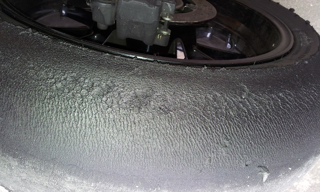 Im Langstreckenrennen hatte ich den V01 drauf, da passte das Abriebbild, war zwar rechts auch stärker aber viel besser als beim V02, Zeit war aber um 2,5 sec langsamer