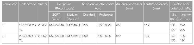tja, das kann man jetzt wieder so oder so interpretieren wass es bedeutet:bremsfix hat geschrieben:Das habe ich auf der japanischen Bridgestone Homepage gefunden.