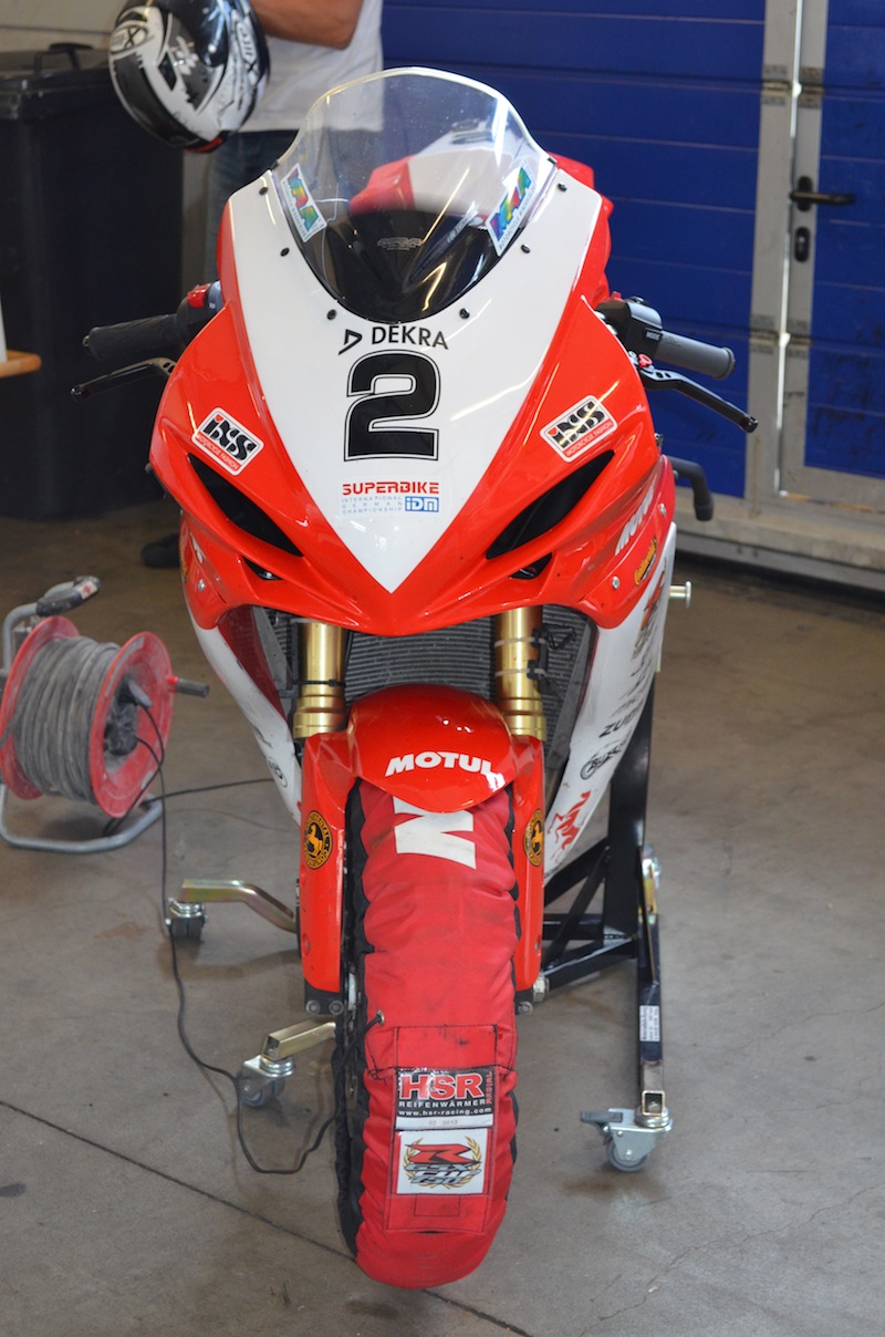 Normalerweise kämpfe ich dieses Jahr in der Superbike*IDM gegen die Überrundung. Umso mehr freute ich mich, das erste Mal nach 15 Jahren Rennsport auf eine 750er zu steigen und mit teils alten Bekannten die Strecke zu umkreisen. Meine Erwartungen waren recht gering, auch wenn Andere sicherlich Anderes erwarten. Aber auf einer geliehenen mir völlig unbekannten Maschine sind sicher keine Heldentaten zu erwarten, v.a. da Oschersleben alles andere als meine Lieblingsstrecke ist. Mir ging es auch primär darum Erfahrungen zu sammeln und auf das „Drum herum“ zu achten, um meinen Lesern einen Einblick in den Suzuki GSX-R 750 Cup zu verschaffen.