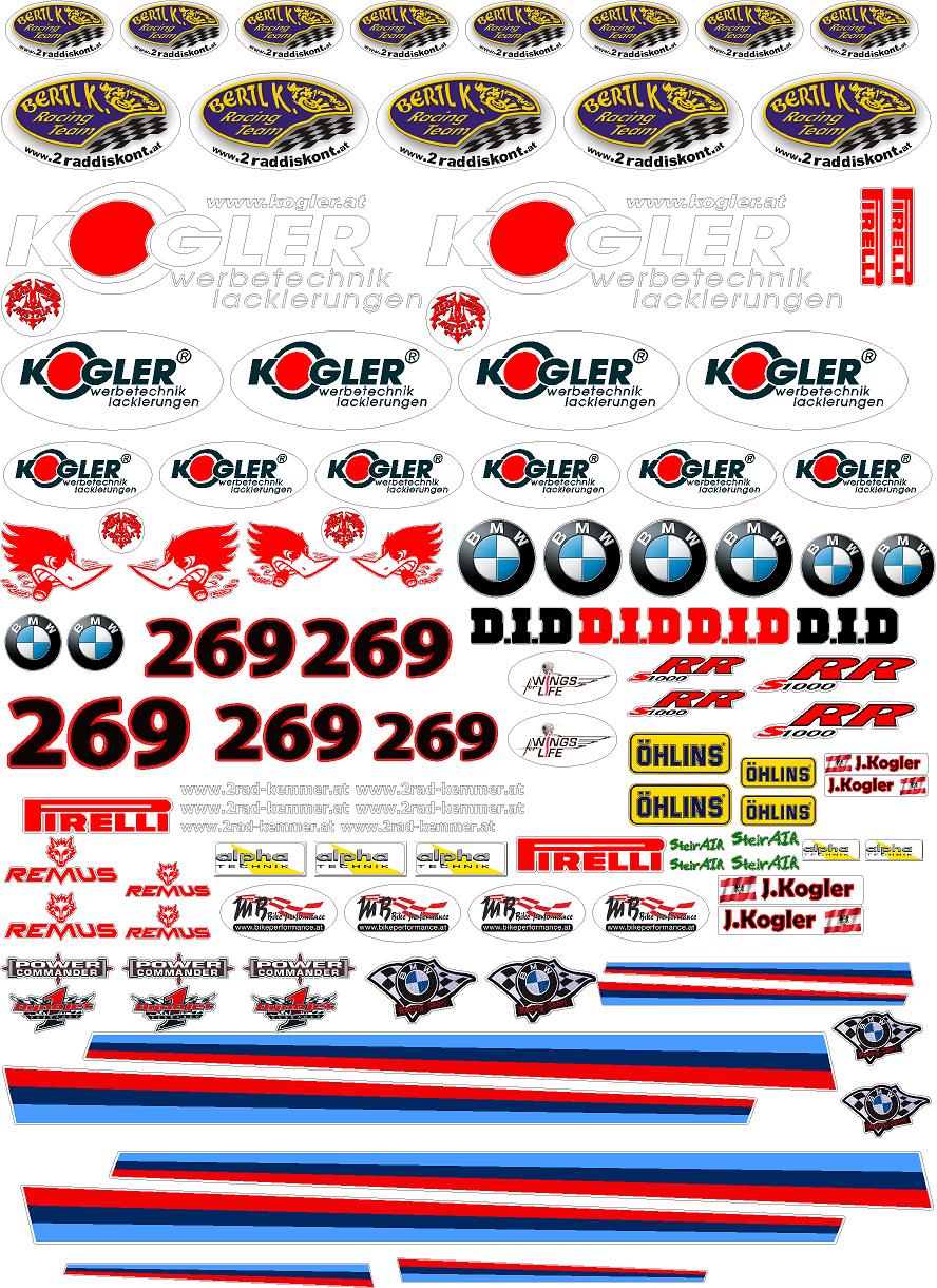 Sticker der Marken "Öhlins, Pirelli, Akrapovic, HJC, Dainese, Yamalube, " suche ich.