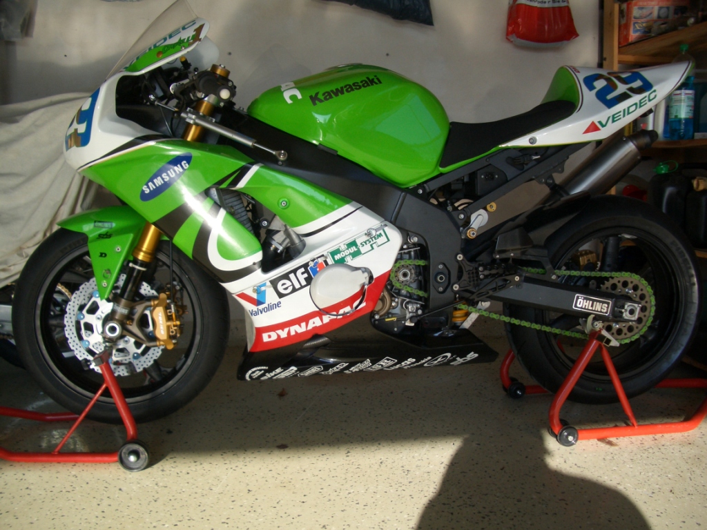 Neu der ZX6RR 03/04 gab es die Möglichkeit einen langen Dämpfer seitlich am Rahmen und mit einer Schelle an der Gabel zu befestigen, also so wie im man aus der MotoGP kennt. Das hat den Vorteil, dass man sich teure Haltesätze spart und das der Dämpfer bei einem Sturz nicht so schnell beschädigt wird wie z.B. ein Dämpfer über dem Tank.