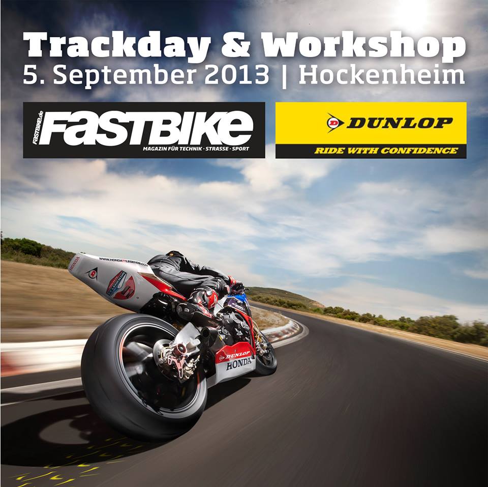 Wir suchen sechs erfahrene Trackday-Piloten, die mit uns am kommenden Donnerstag, den 5.9. in Hockenheim (IDM-Kurs) auf Rundenzeitenjagd gehen. Die Reifen werden kostenlos gestellt (wahlweise D212 GP Pro oder KR-Slicks), um das optimale Setup kümmert sich der Fahrwerksexperte Steven Casaer, Chef der Dunlop-Testcrew (Stefan Nebel etc.). Als Instruktor fürs Feilen an der Linie steht FASTBIKE Racer Dirk Schnieders zur Verfügung.