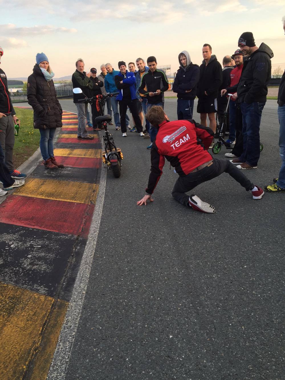Fangen wir mit dem Negativen an. 2 Qualis sind einfach immer wieder zu wenig Fahrtzeit. Zu Beginn des 2. Qualis war auf einmal der Kupplungshebel fest. Ich büßte die Hälfte an Zeit ein und brauchte 2 Runden um die Reifen wieder warm zu fahren. Eine ganz lustige Story die ich noch nirgends anders veröffentlich habe: