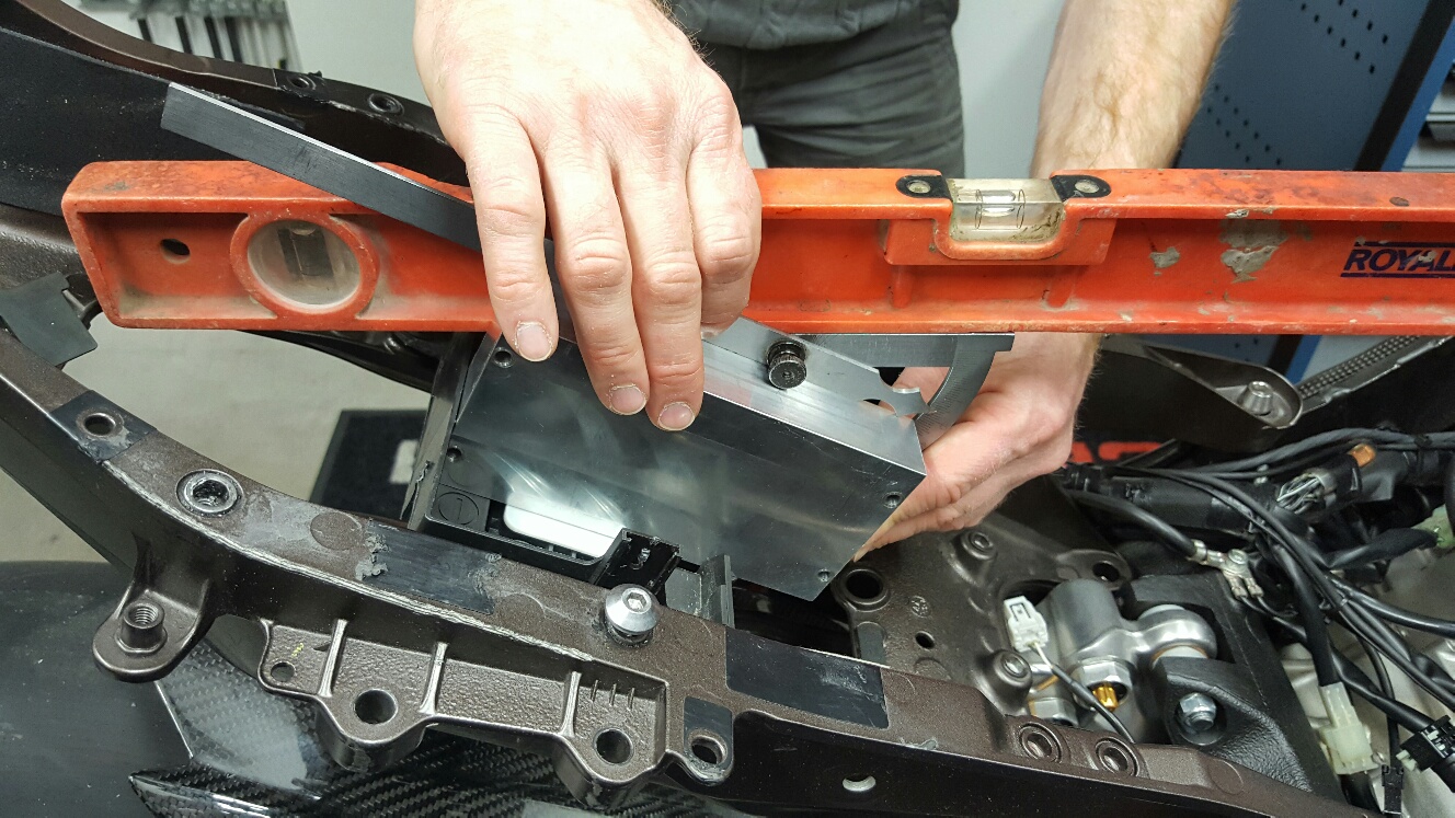 Wo wir gerade 4 Hände zur verfügung hatten haben wir auch gleich mal den Winkel der IMU ausgemessen und dafür einen originalen Heckrahmen montiert. Immer gut wenn man die OEM Teile nicht verschachert hat.