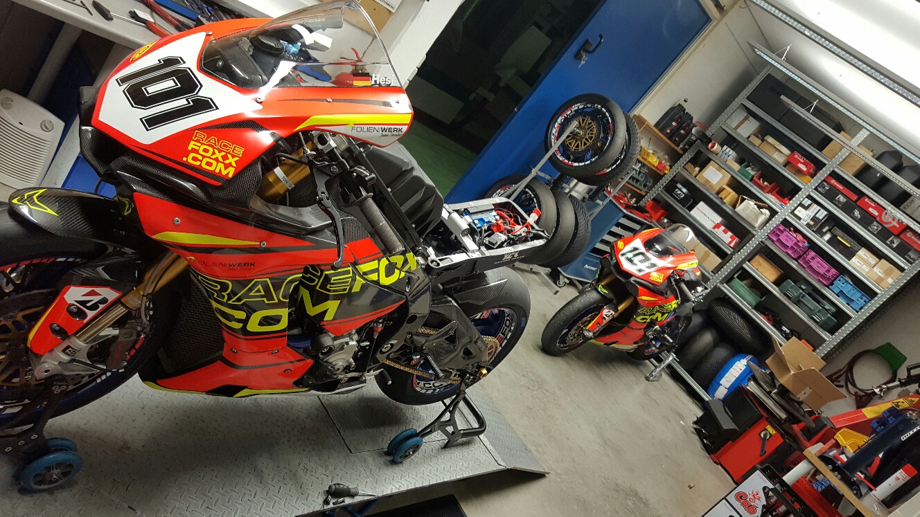 Die Familie hat heute Zuwachs bekommen. Das Motorrad von meinem Teamkollegen Thommy werden wir nun auf den technisch selben Stand wie meine bringen.