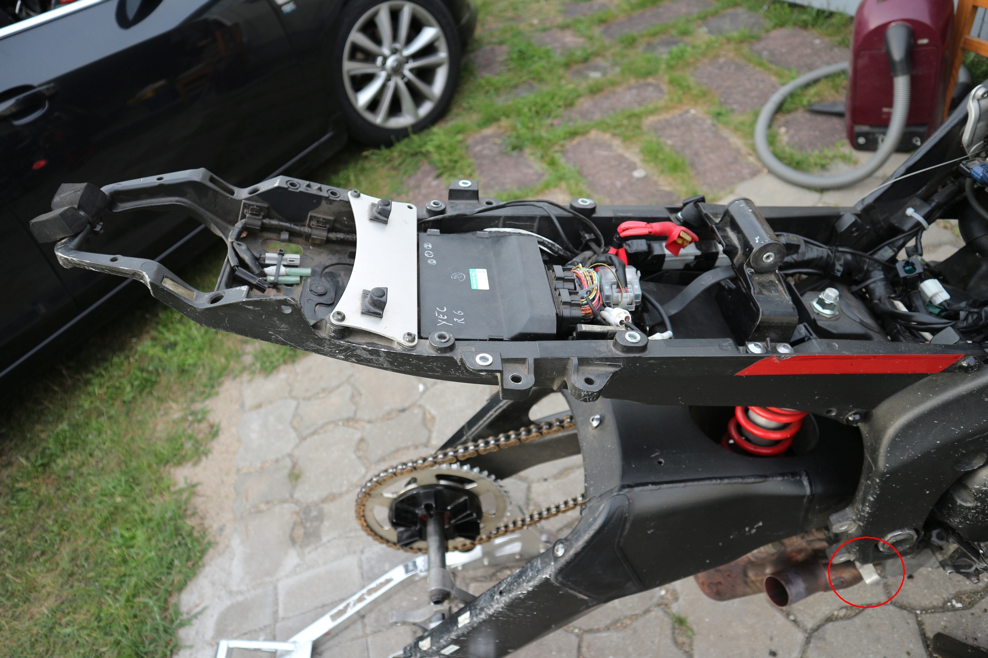 der "winkel" für den bugspoiler ist am motorblockoder rahmen verschraubt