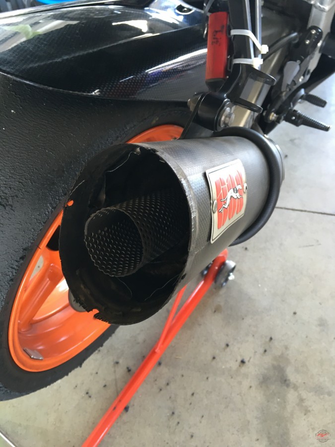 Aber die Rettung war nah. Ein nettes C-Hörnchen hatte ich Freitags vor Abreise noch gefragt, ob er mir einen ledierten IXIL Endtopf mitbringen solle, da dieser sonst in die Tonne geht. Schön war er nicht. Einmal n Sturz gehabt oder zumindest Kies gesehen. Ich dachte mir aber bevor er ihn wegwirft nehm ihn halt. Evtl. kann man sowas ja mal gebrauchen. Und manchmal ist es wohl Schicksal oder sowas. So auch hier.