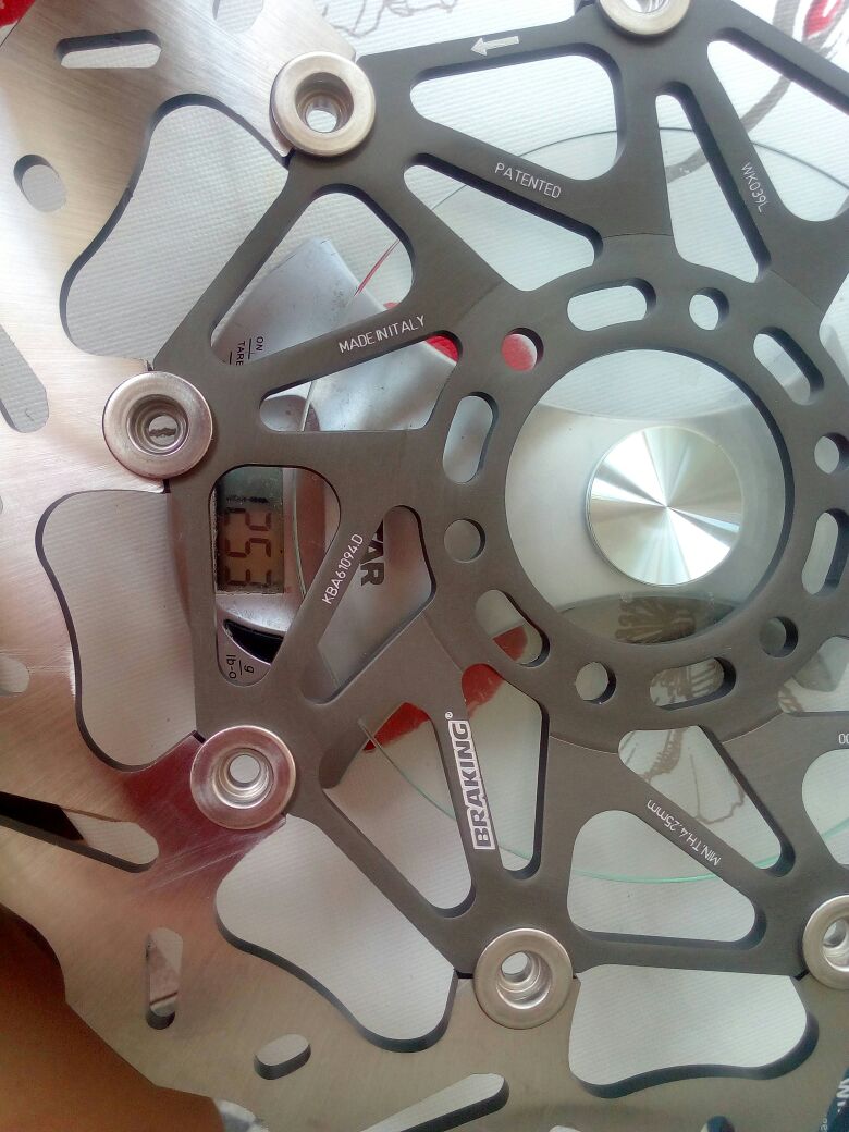 Nach Osl kam ich wie auch immer auf die Idee ne rsv4 Felge müsste doch anzupassen sein, bei 224€ neu vom Aprilia Händler, also erstmal eine bestellt, Lochkreis der Bremsscheibe ist ja derselbe :band: