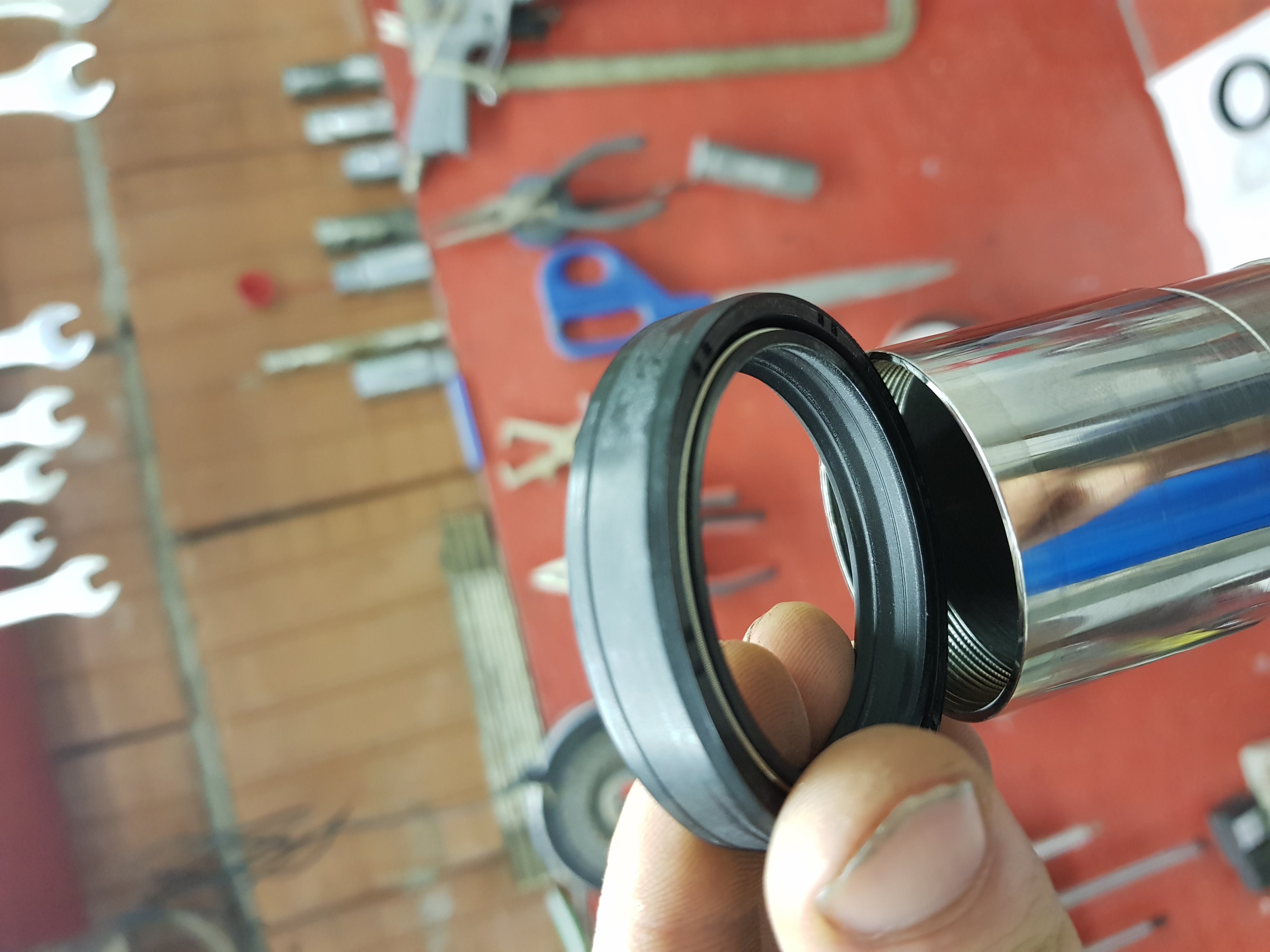 Im nächsten Schritt werden Simmerring -> Unterlegscheibe -> und die 2 Gleitbuchsen in der entsprechenden Reihenfolge auf das Tauchrohr gesteckt um dann im Folgenden das Standrohr aufzustecken(2 Bilder weiter seht ihr auch nochmal die Reihenfolge im Bild). Geht relativ einfach wenn man einen passenden Simmerring-Eintreiber hat und wie ihr euch sicherlich denken konntet war ich nicht Besitzer eines gewesen:-D