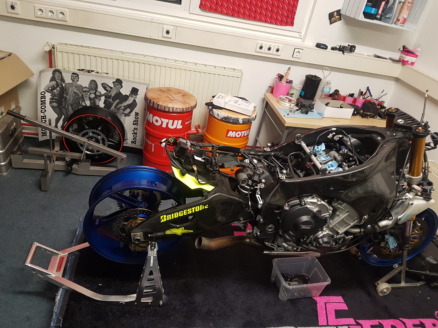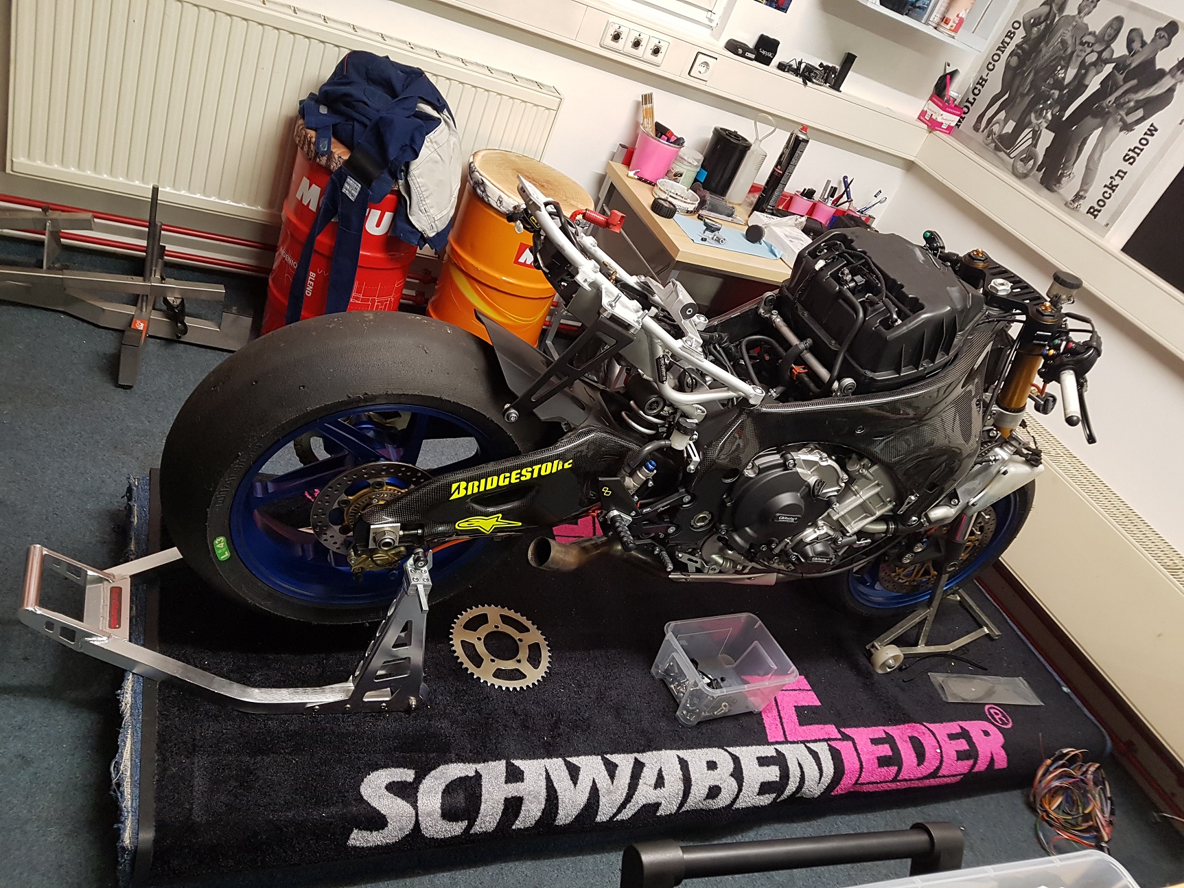 Desweiteren würde alles Flüssigkeiten eingefüllt und das Motorrad weiter komplimentiert sowie das lang erwartete TTX eingebaut.
