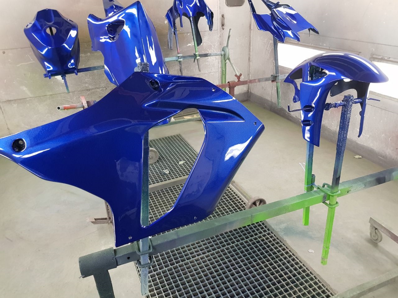 So Phase 2 war dann , Verkleidung lackieren, Auspuffzwischenrohr selber bauen für 60mm Anschluss und einen Akra ESD für leise Rennstrecken, das Rohr wird nach den ersten Tests noch so weiter angepasst das es geflanscht werden kann und somi auch der KIT Esd verbaut werden kann.