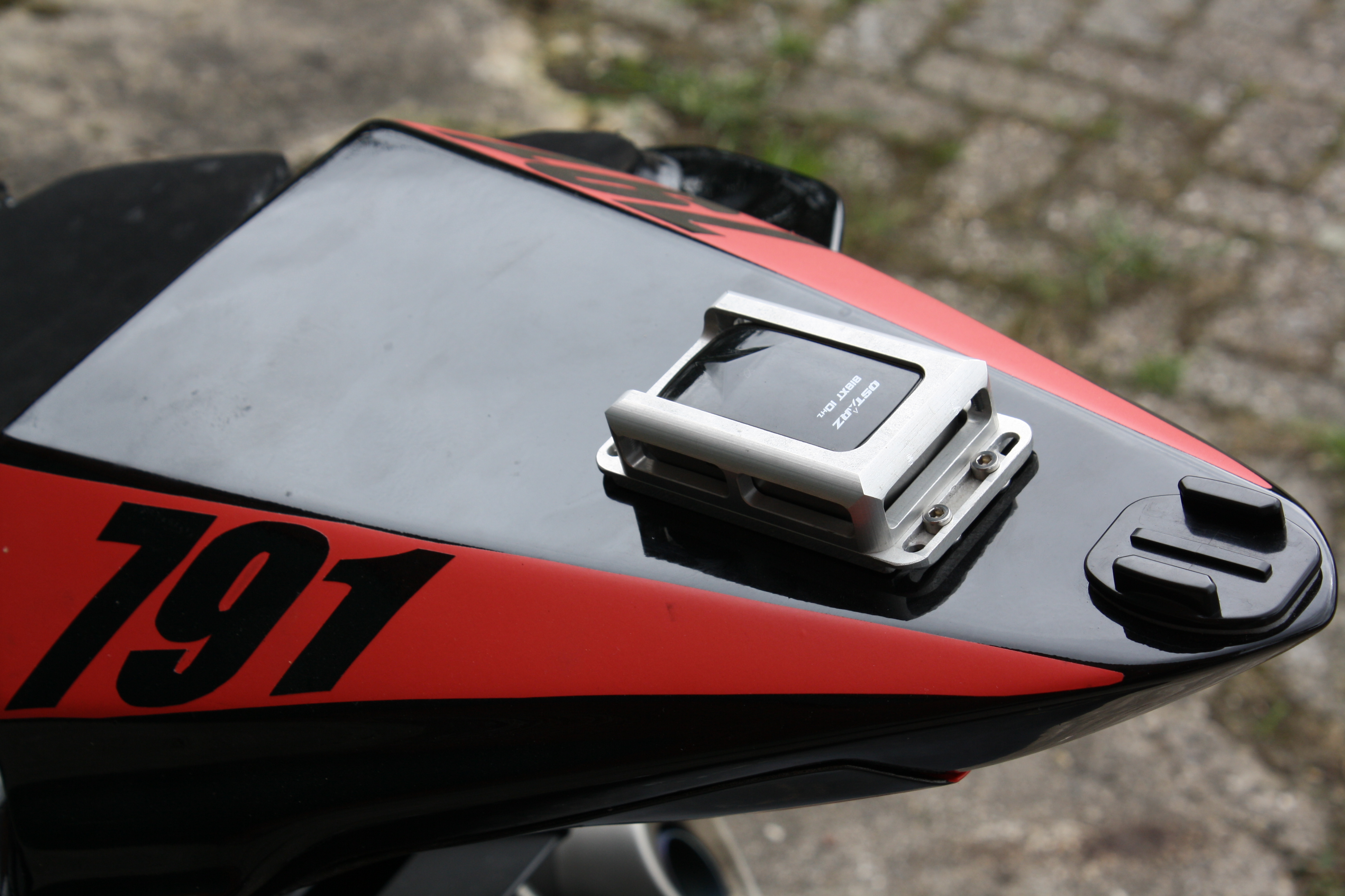 Damit kann ich den Empfänger wunderbar mit vier Schrauben aufs Heck schrauben, oder wenn ich woanders mit fahre per Kabelbinder festziehen.