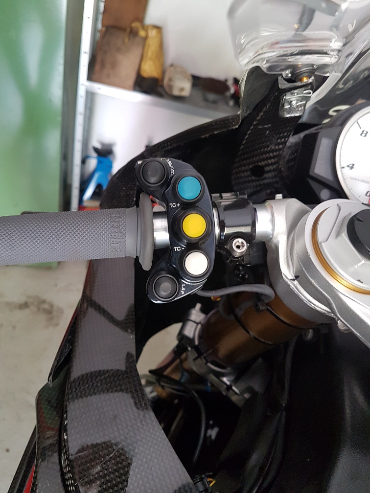 "die Funktion des Pitlimiters sollte ihnen erhalten bleiben. Die Belegung des rechten Schalters ist exakt gleich wie die des Serienschalters, mit Ausnahme der Verlegung der Modusschaltung nach links.