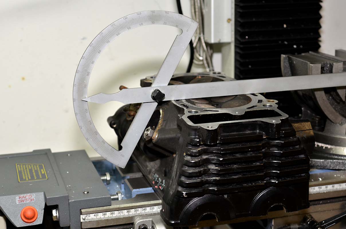 Heute habe ich an einem der Köpfe die Aufnahmen der Krümmer aufgespindelt und an die vorgesehen Krümmer der ZX10R angepasst. Dafür muss der Kopf irgendwie im richtigen Winkel auf die Fräse gespannt werden. Bei solchen Dingen versuche ich immer den einfachsten Weg zu gehen, so auch hier.