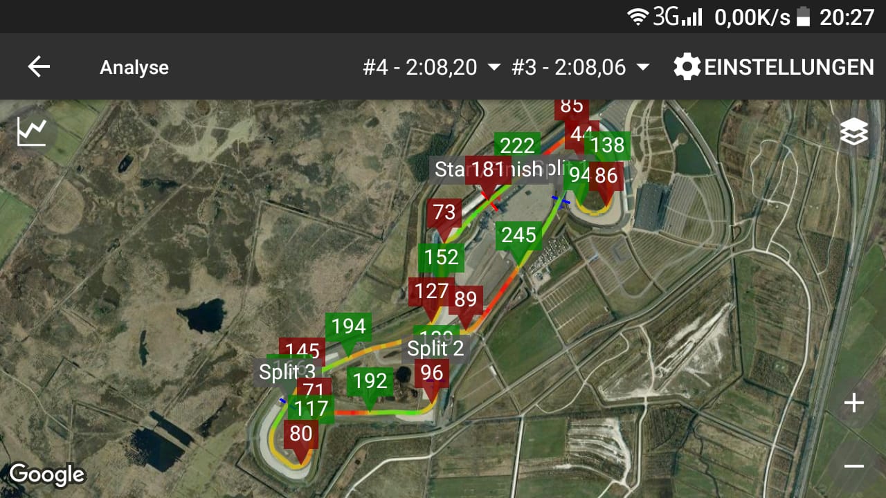 Noch anschaulicher wäre ein Ausdruck, der eure selbst gefahrene Linie, mit 10Hz aufgezeichnet - muss ja nicht perfekt sein. Dann könnte man genau sehen, wo Zeit liegen geblieben ist...vielleicht ist die theoretische Idiallinie ja garniche DIE Ideallinie - warum auch immer...