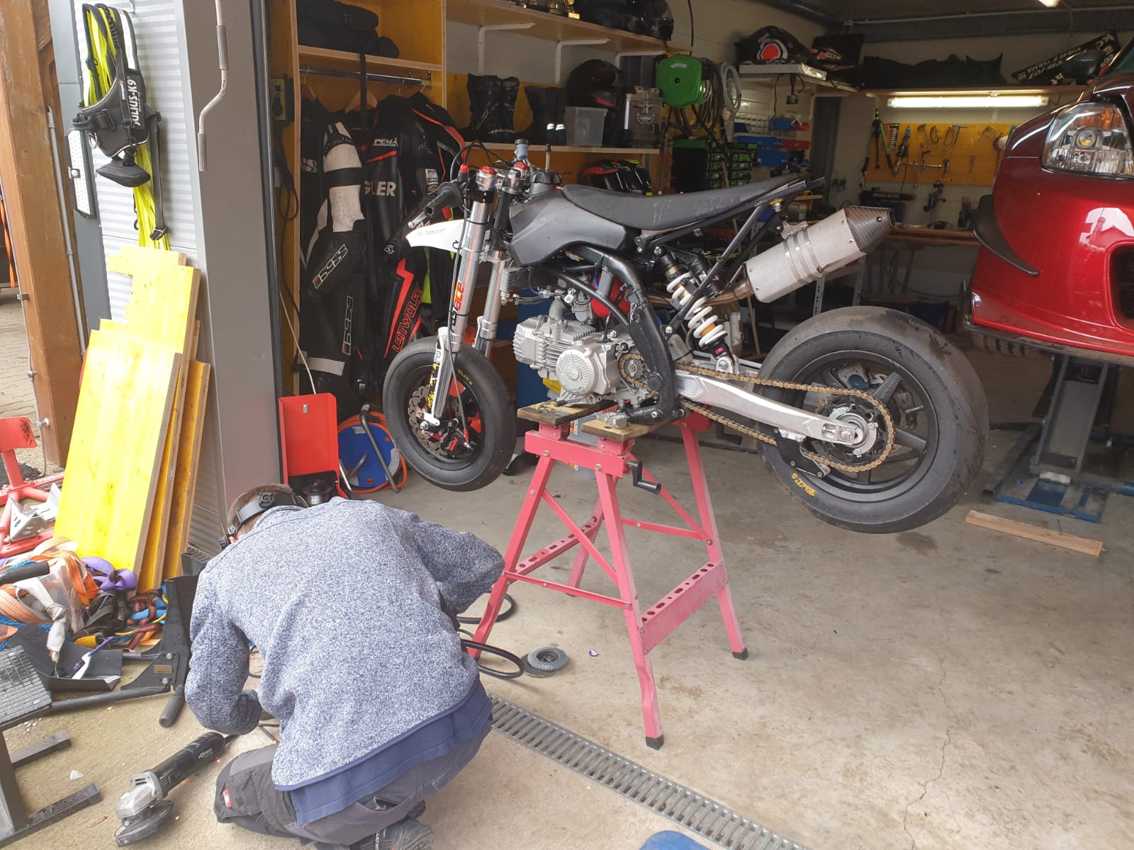 Ist beides lustig, hoher Lenker oder Stummel. Fürs Rennstreckentraining passt der Stummel halt perfekt.