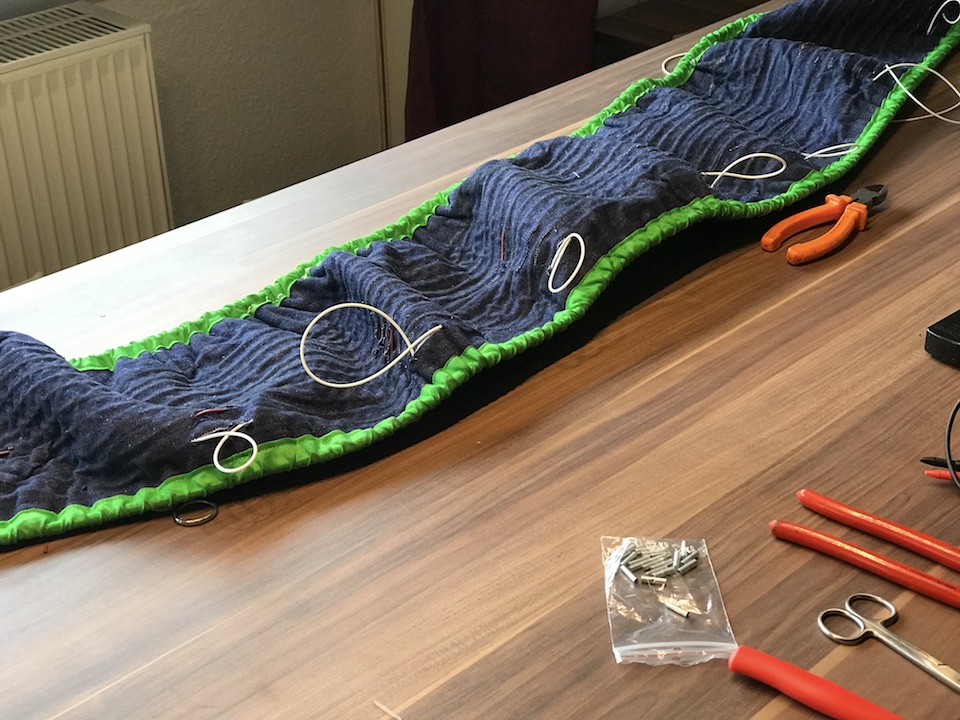 die Kabel kommen alle wieder da hin wo sie hin gehören, unter den Stoff und dann