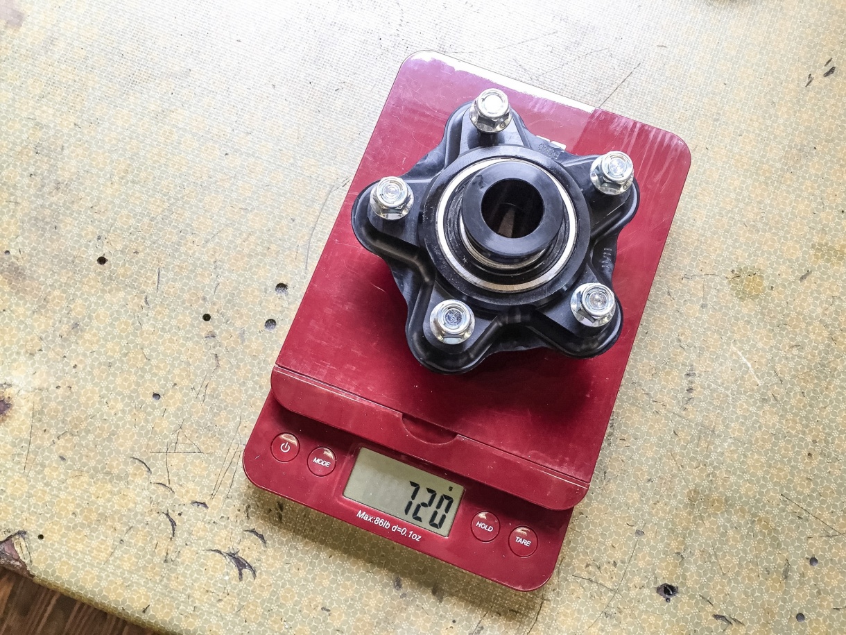 Kettenradträger für die normale Piega-Felge hatte bei mir 840g (wie oben abgebildet mit Muttern).