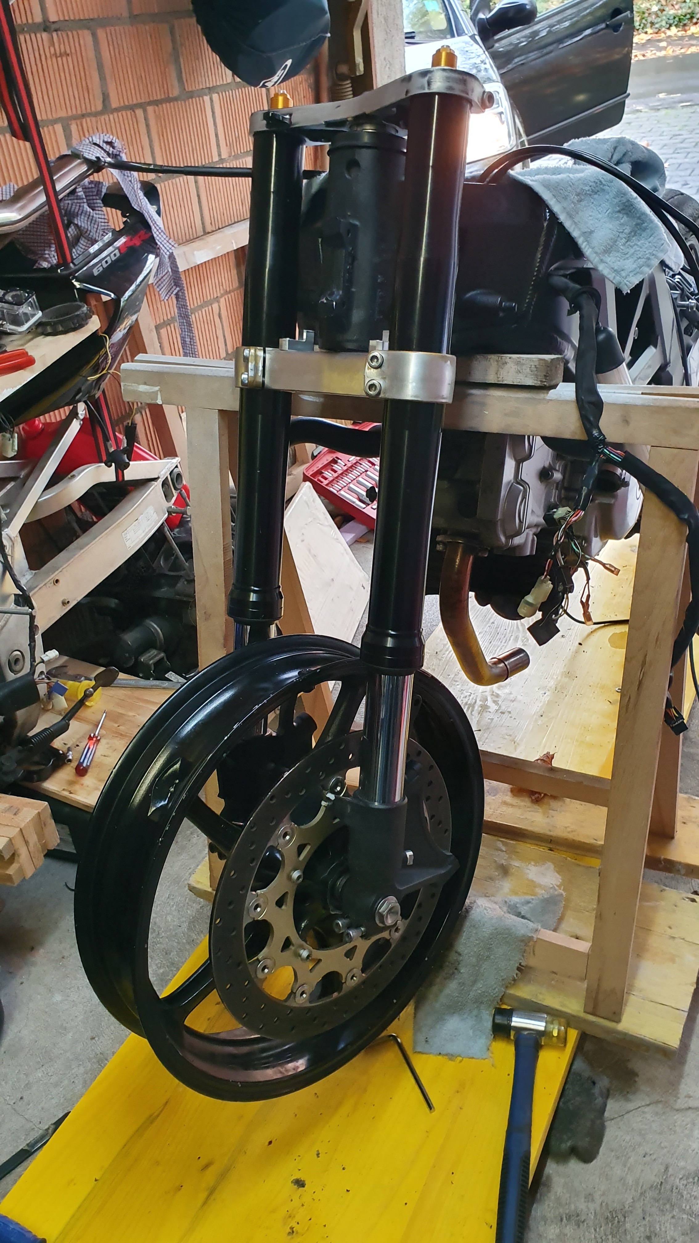 cider101 hat geschrieben: Auch die Lenkanschläge müssen angepasst werden. Im aktuellen Zustand würden die Gabelholme an Rahmen anschlagen und wären im Falle eines Sturzes Kernschrott.