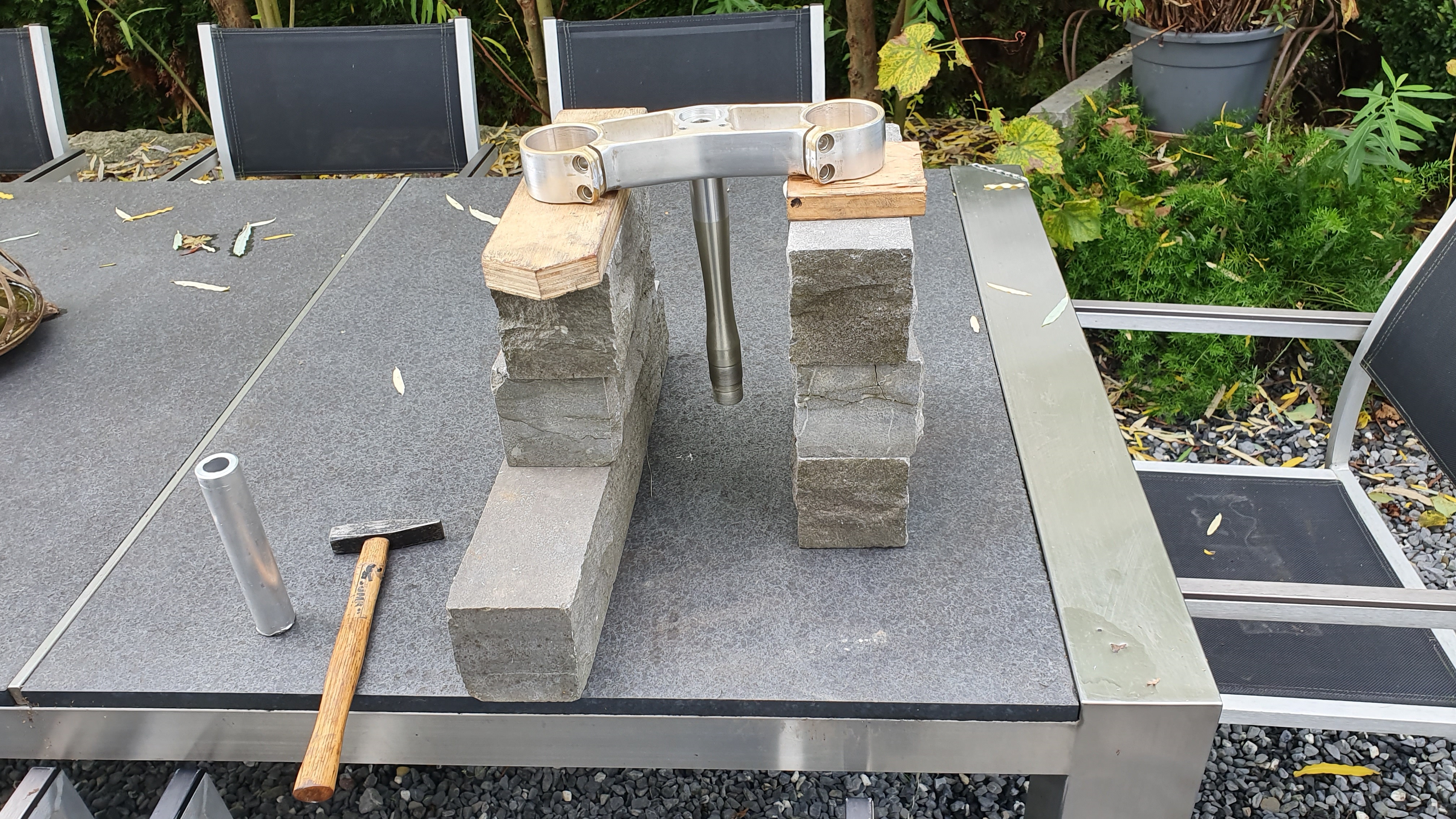 Das Zusammenfügen ging dann wirklich ganz einfach und ohne Gewalt - Theorie und Praxis haben übereingestimmt. Das Joch viel von alleine in die Brücke. Zur Sicherheit noch eine leichten Kontrollschlag geben...
