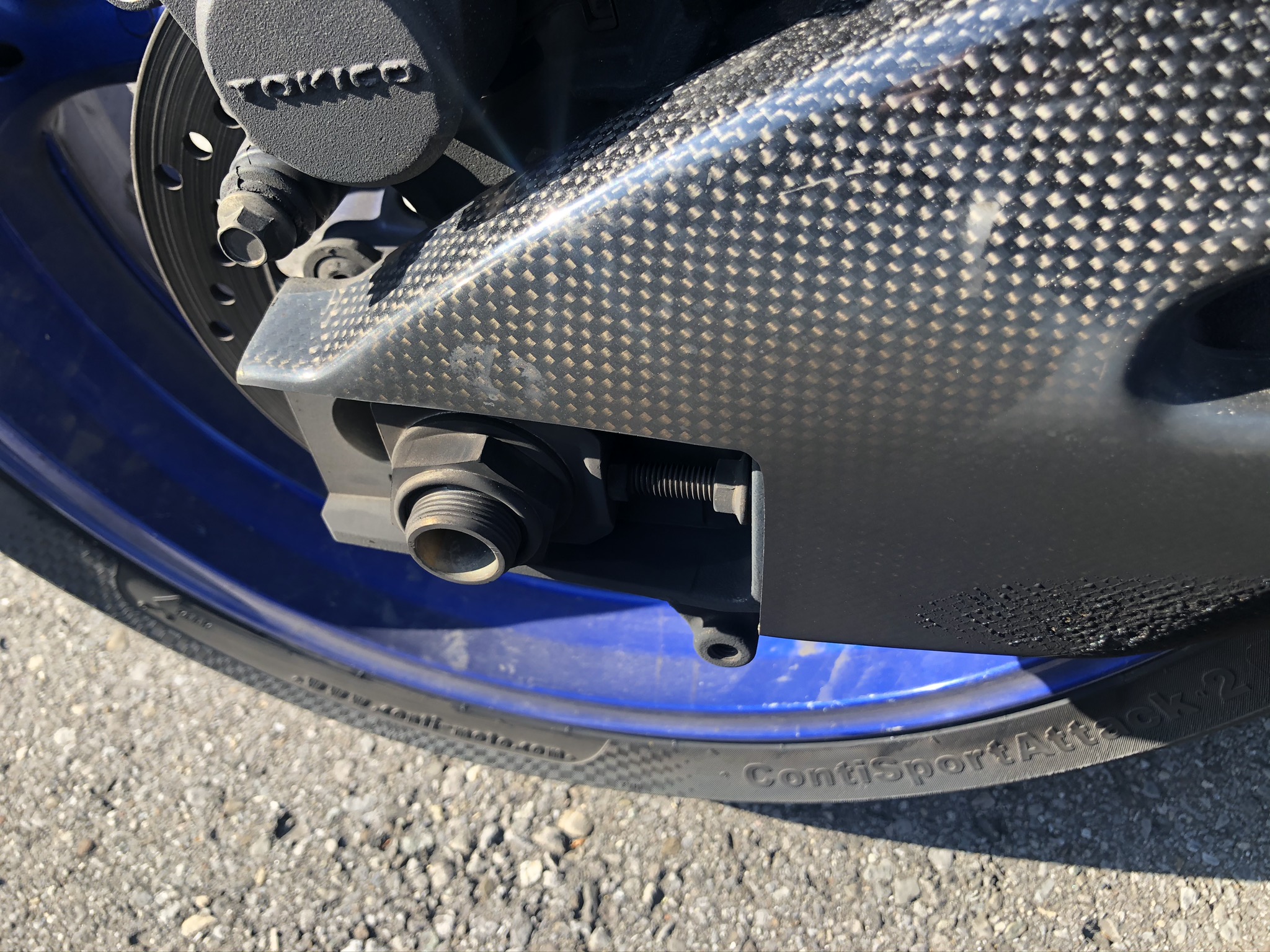 Nun bin ich letzte Woche mal 100km gemütlich gefahren und gestern nochmals 200km mit Zeitweise schon straff gespannten Gasseil und hohen Drehzahlen wenn die Strecke kurvig war und passte. Abgesehen davon dass mein Schwingenschoner durch die ungünstige Form der Yoshimura komplett verkohlt ist (werde ich noch ausschneiden) merkte ich auch dass die Schwinge, Steckachse und Mutter komplett schwarz waren, hatte ich vor der Abstimmung zwar auch schon, aber niemals in diesem Ausmaß!