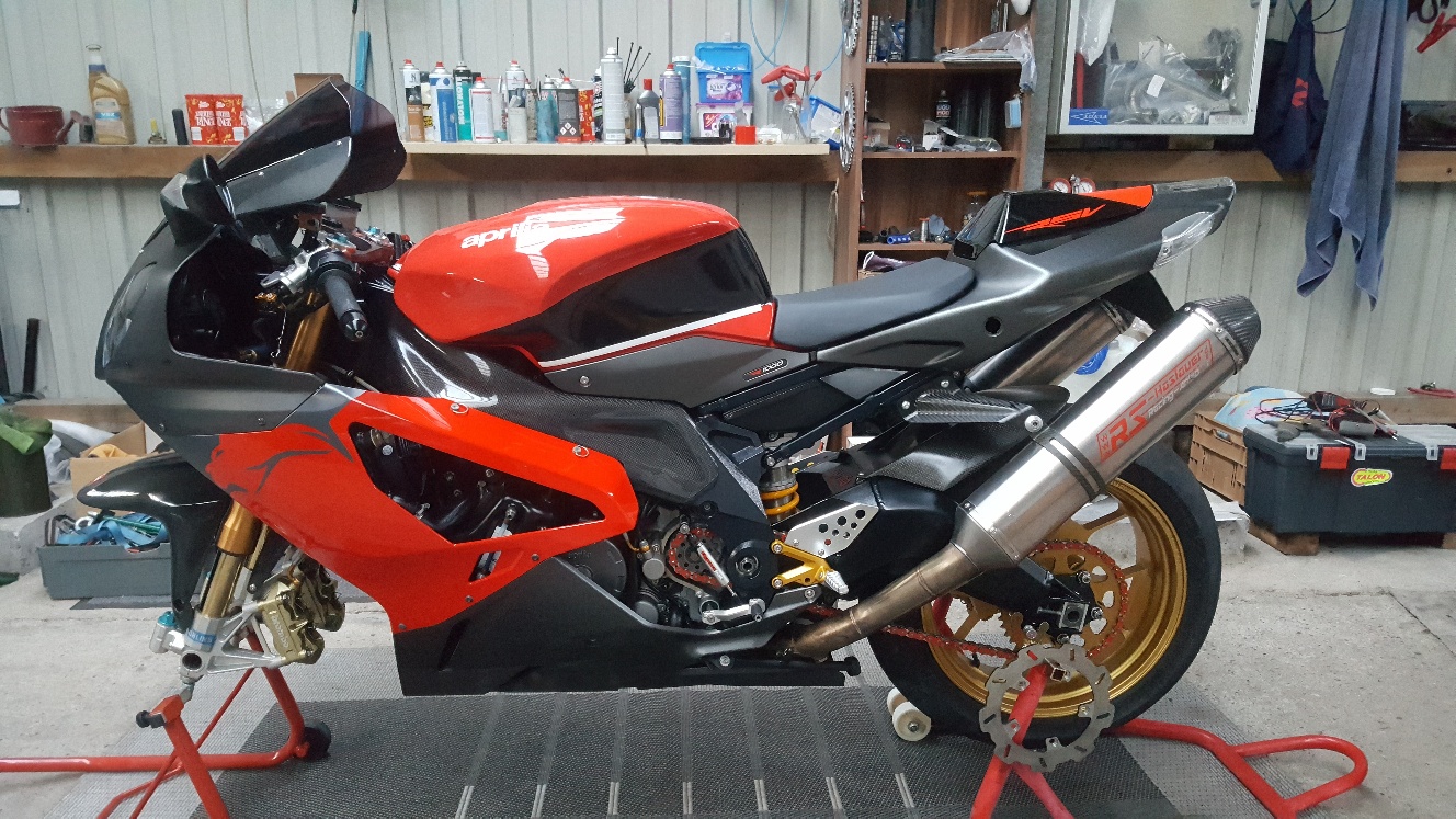 Ostern kam eine 09er Mille Factory für die Sonntagsrunde dazu.Jetzt steht schon wieder eine 04er RSV in leichten Renntrim daneben weil sofort wieder die Lust auf ein paar freie Trainings aufkam nach den ersten Meter auf der Strasse!