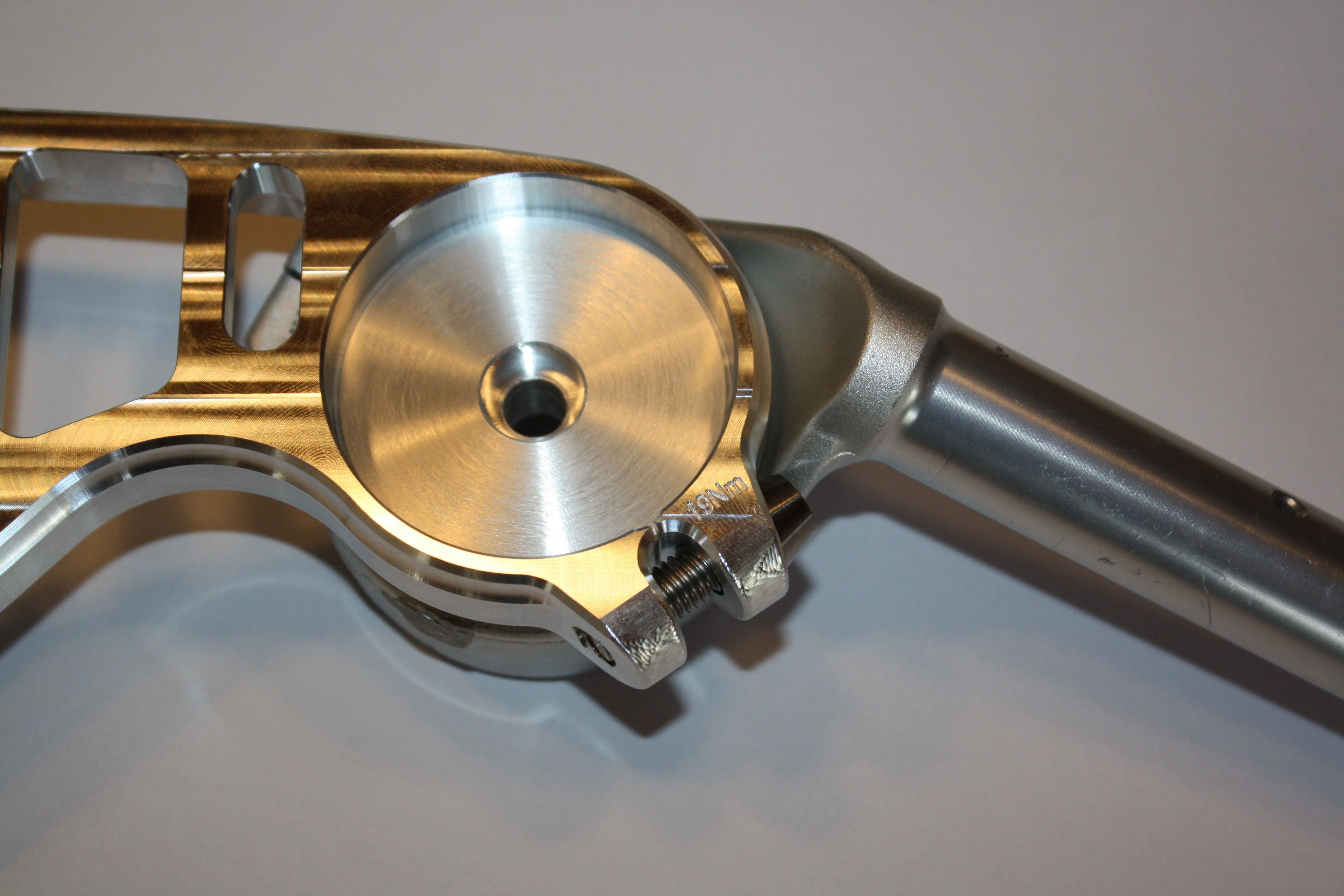 Die Klemmung ist dabei auf der gleichen Seite wie das Kugelgelenk, wodurch die Bauform nach vorne hin viel Kürzer ist, obwohl das Offset mit 20mm nicht viel kleiner ist das der kurzen Öhlins-Schelle.