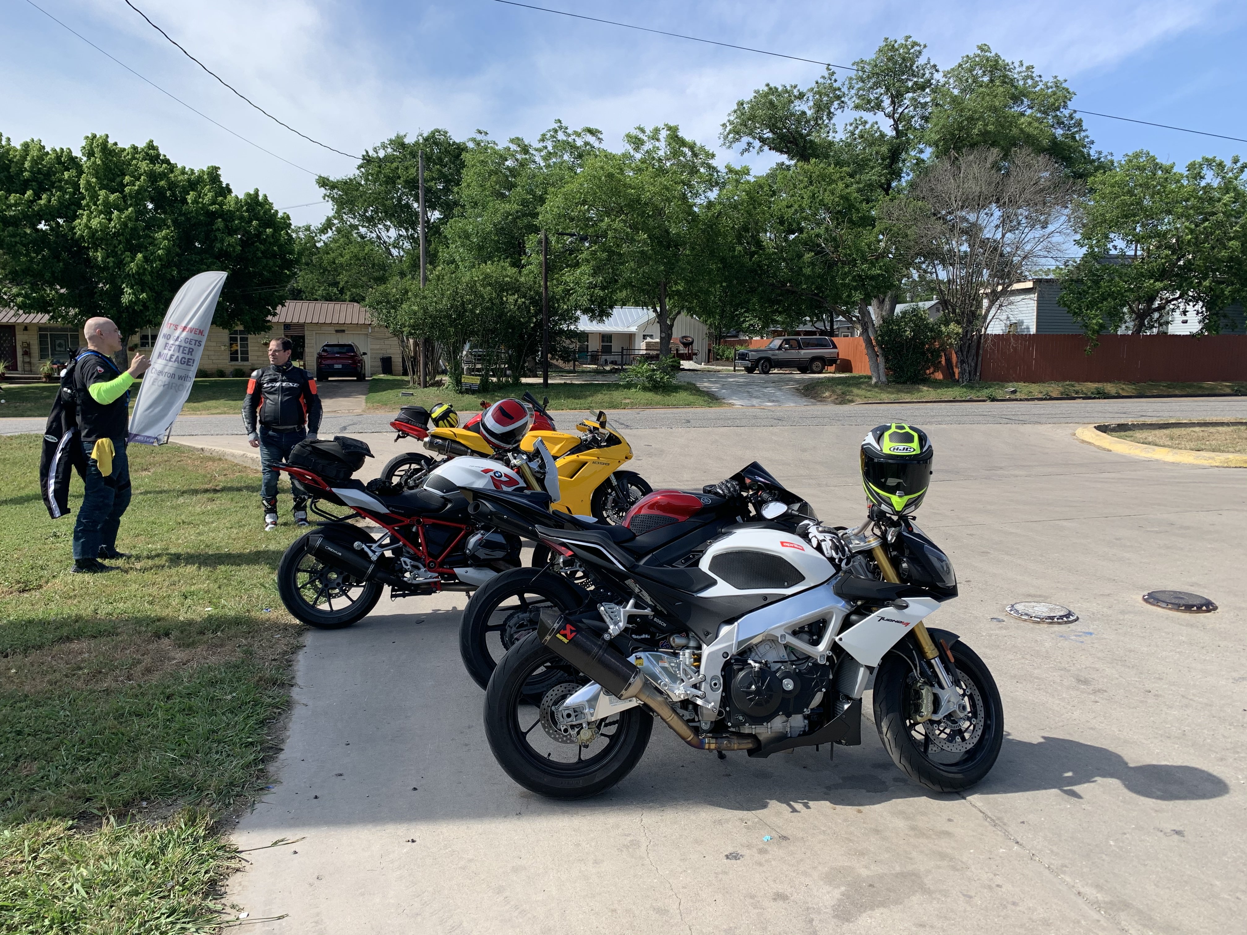 So lange kann ich aber zumindest ein wenig allgemein ueber das Motorrad fahren sprechen. Am Samstag habe ich mal die Tourenqualitaet der Tuono getestet und war insgesamt 460 Meilen, also grob 760km unterwegs, mit relativ wenig Pausen und 4 anderen "locals". Trotz meiner Groesse (190cm) hatte ich eigentlich keine Probleme. Habe mich zwar sehr auf die Badewann danach gefreut, aber generell ging das wesentlich besser, als ich dachte. Wir sind von Austin aus nach Suedwesten gefahren, Richtung "twisted sisters". Das sind drei kurvige Landstrassen die quasi ein Quadrat bilden (ja, das geht... eine macht halt an einer Stelle einen rechten Winkel