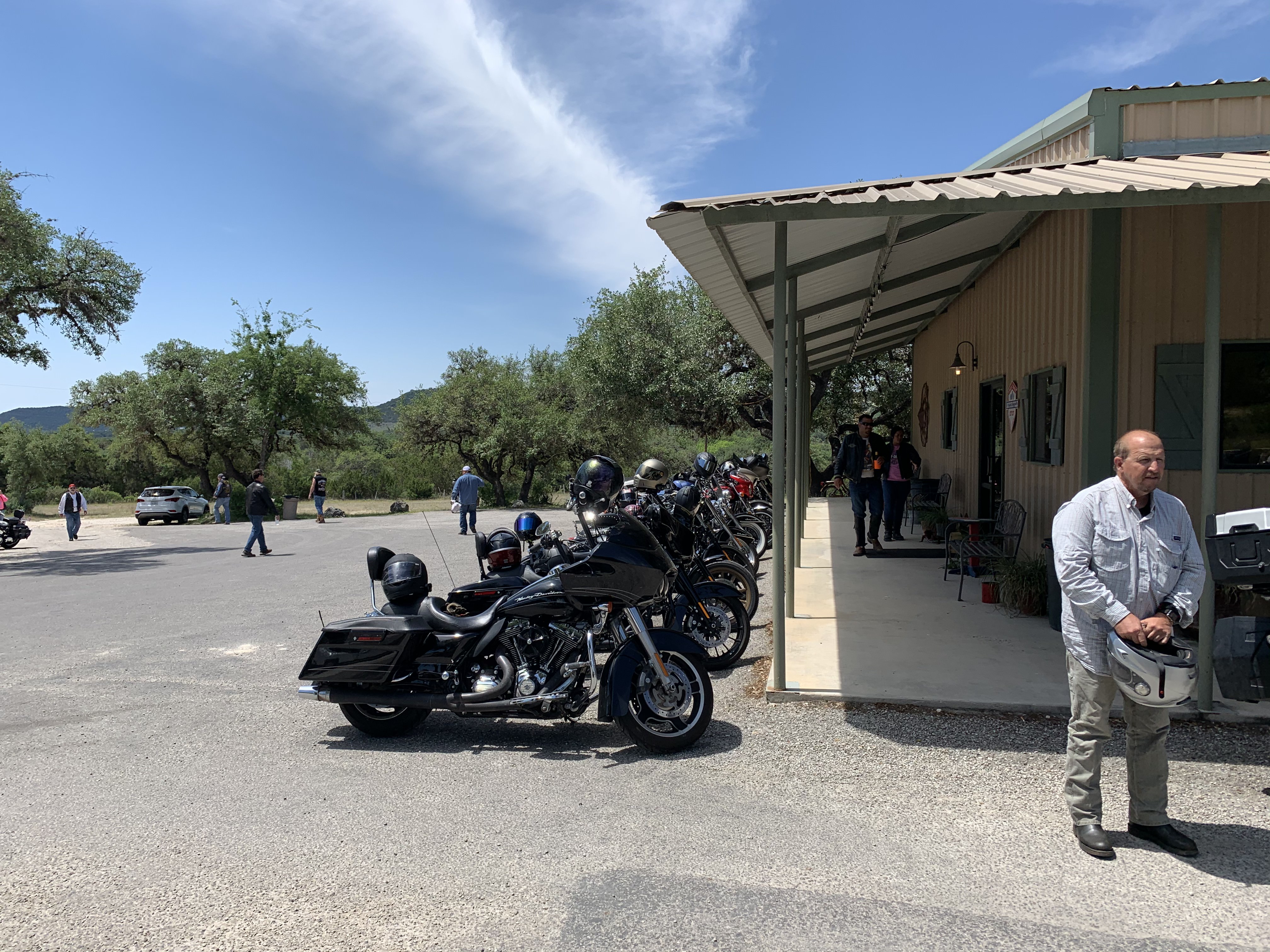 Ausfahrt in Texas, man beachte die Art der Motorraeder am "Treff": Arbeitsplatz