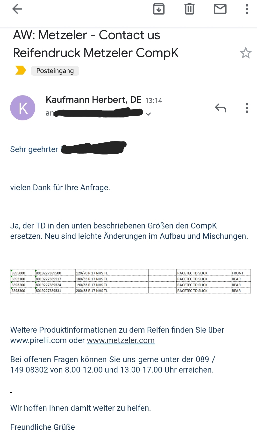 Würde mich auch interessieren der TD von Metzeler.