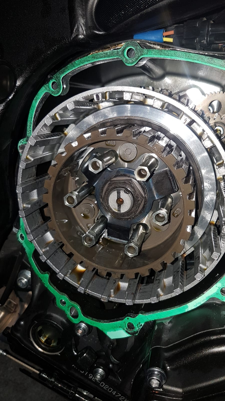 Öl + Filter gewechselt und dann besagtes EBC Kupplungskit (Reibscheiben und verstärkte Federn) eingebaut. Stahlscheiben sind neue von Yamaha.