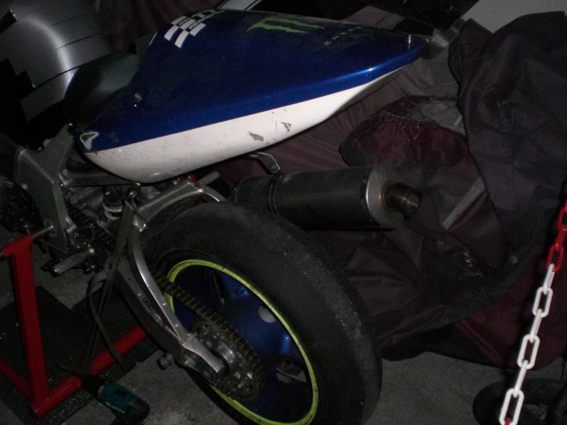 So konnte ich tatsächlich schon mal die Oberverkleidung und das reparierte Heck anbringen. Schnellverschlüsse muß ich ein anderes mal installieren. Die Scheibe hatte ich zum Glück noch in Reserve, die ursprüngliche liegt in Teilen zusammen mit meinem Visier im Salzburger Kies.