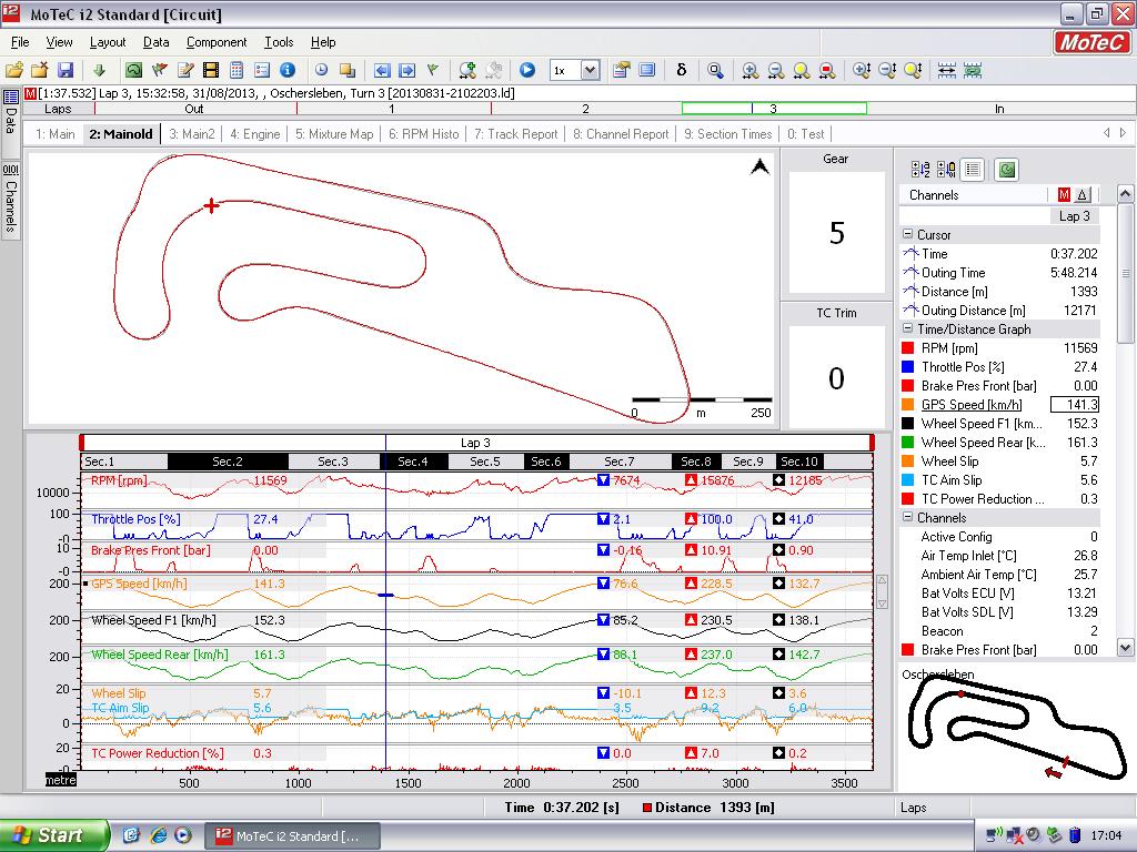 Schau mal auf die angehgängte Grafik und vergleich mal die Geschwindigkeiten in der Triple in Oschersleben (Vorne, hinten und GPS) miteinander.